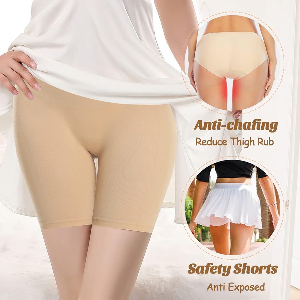 ◆ شورت أمان بدون خياطة: هذه السراويل القصيرة بدون خياطة تحت الفساتين رائعة لمساعدتك على تجنب الإحراج وتوفير مظهر سلس وخالي من الخطوط تحت الملابس الضيقة، خاصة الألوان الرقيقة والأخف وزنًا أو التنانير/السراويل الضيقة.