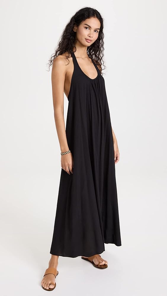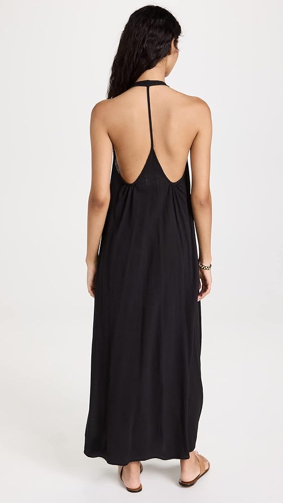 A light and breezy maxi cover-up crafted from crinkled gauze, this 9seed dress features a halter neckline and delicate strap at the open back. Wear yours with your favorite swimsuit and strappy sandals for an easy beach day look.