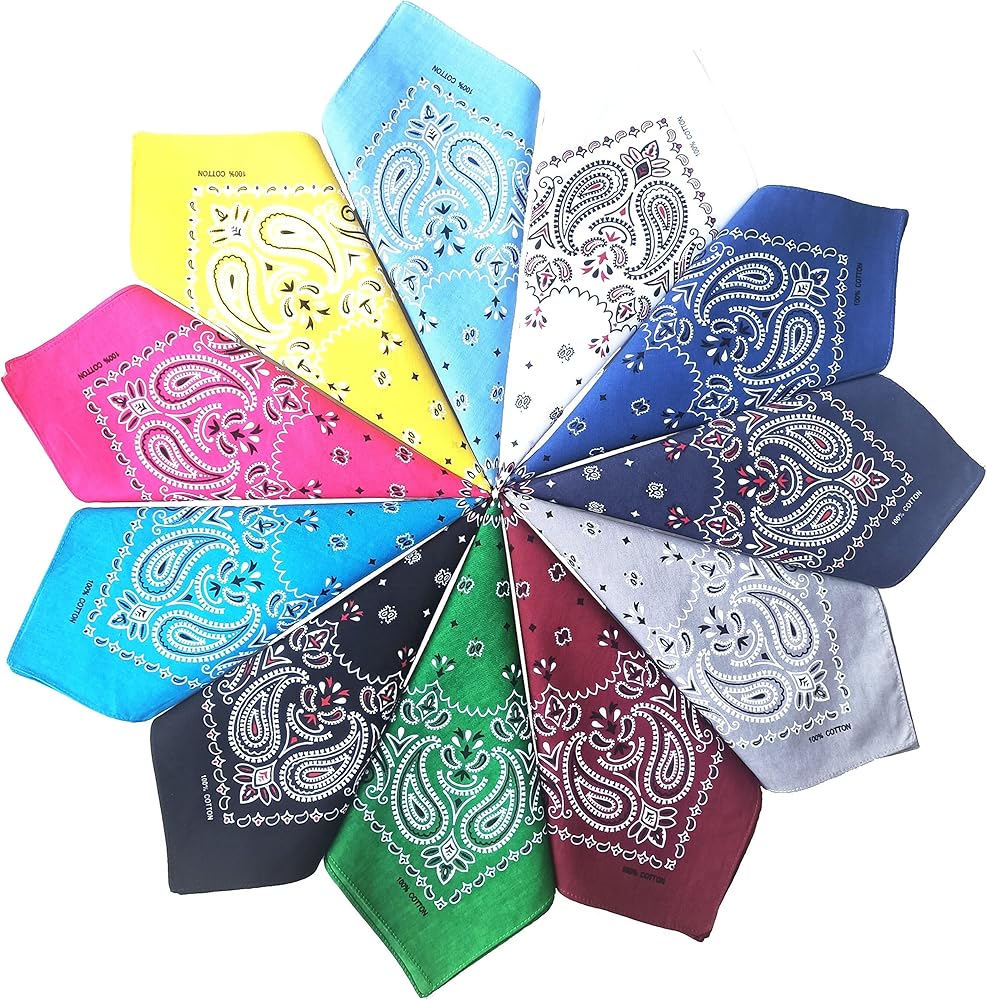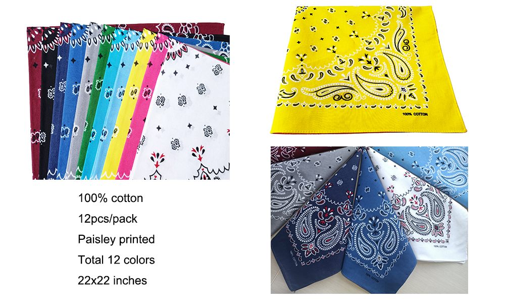 triumphal 100% Cotton bandanas/scarves for Men & Women New Paisley printed 12pcs, Mixed, 22x22 inches