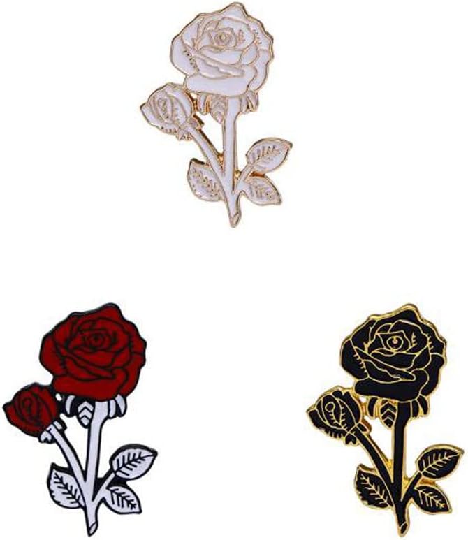 3Pcs Rose Enamel Pin White Red Black Rose Lapel Pin Flower Brooch Badge Enamel Lapel Badge Clothing Bag Pin Decoration Mother Girl Gift, Metal, no gemstone