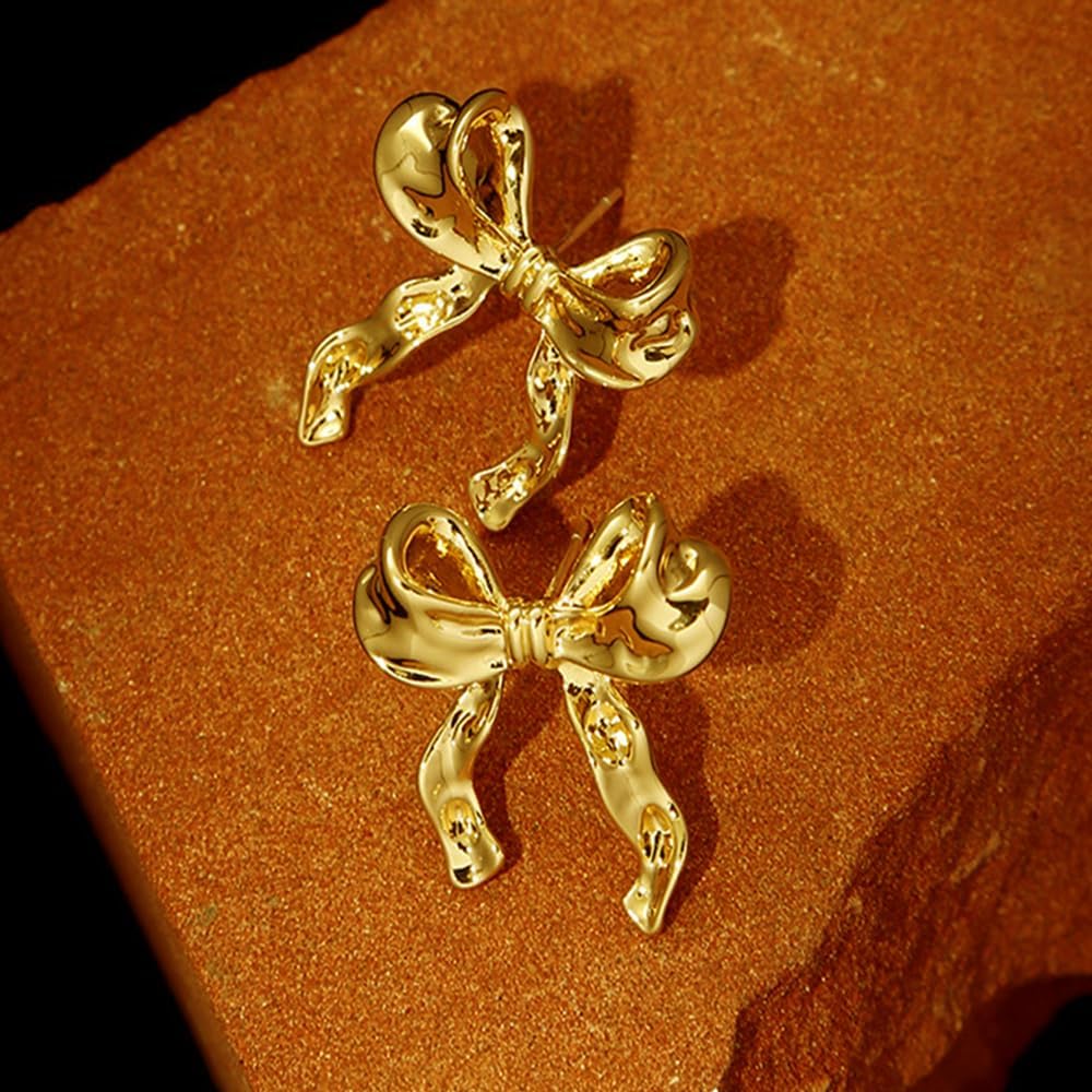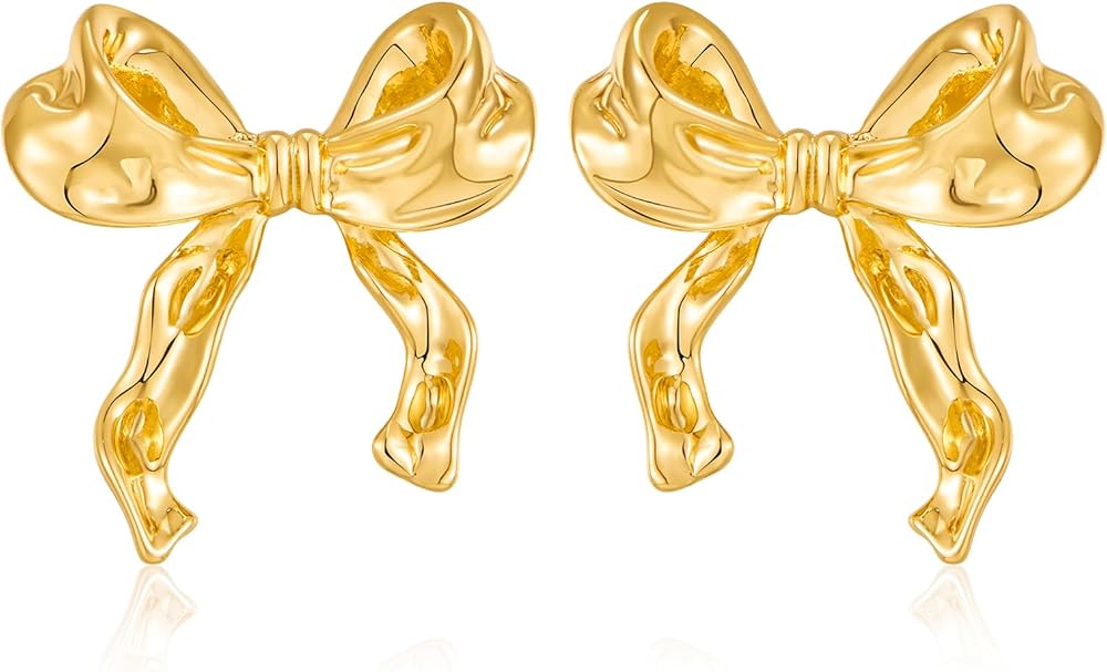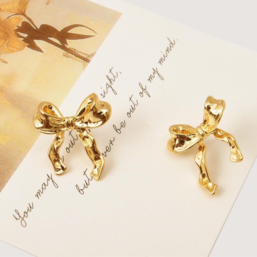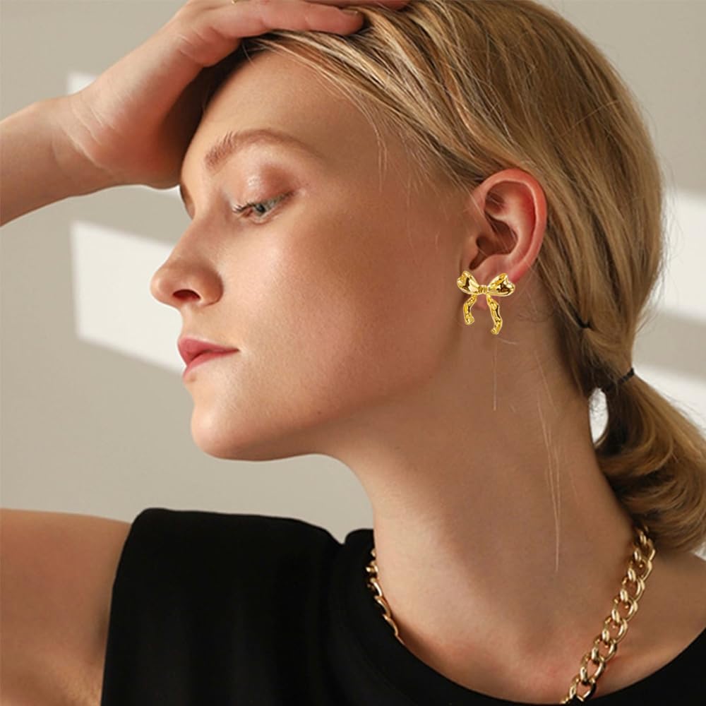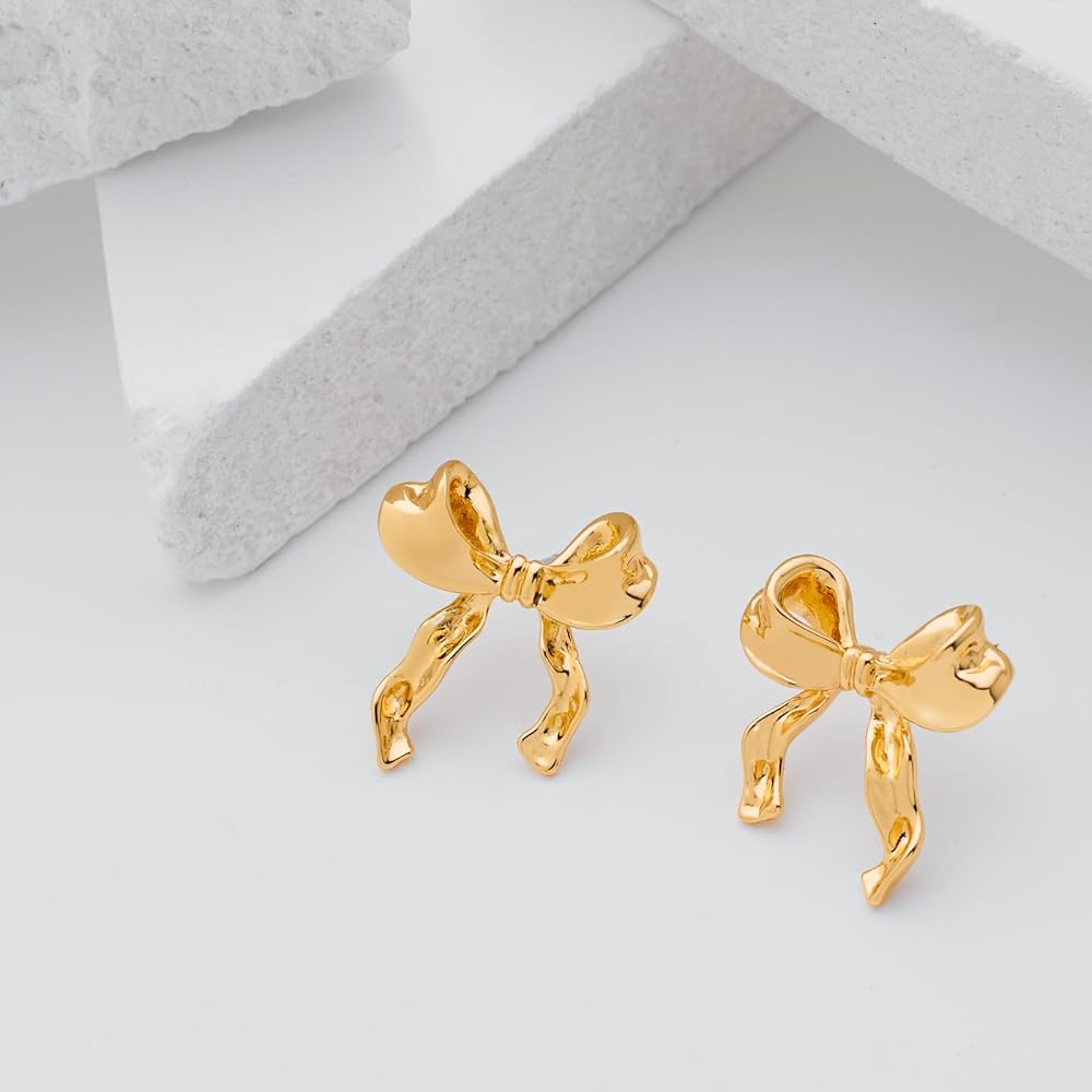 أقراط على شكل فيونكة ذهبية فضية للنساء أقراط على شكل فيونكة كلاسيكية أقراط على شكل فيونكة لطيفة هدية