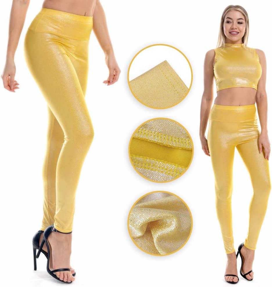 These shiny leggings are made of high quality polyester and spandex, which are soft, comfortable, and stretchy. They are perfect for dance, Music Live Party, or everyday wear. The high waist design provides a flattering and comfortable fit, while the shiny fabric adds a touch of glamour to your outfit. The leggings have good breathability and moisture-wicking properties, which make them ideal for active wear. They are also easy to care for and machine washable. These leggings are available in a variety of colors and sizes, and are perfect for adding a touch of sparkle to your wardrobe.