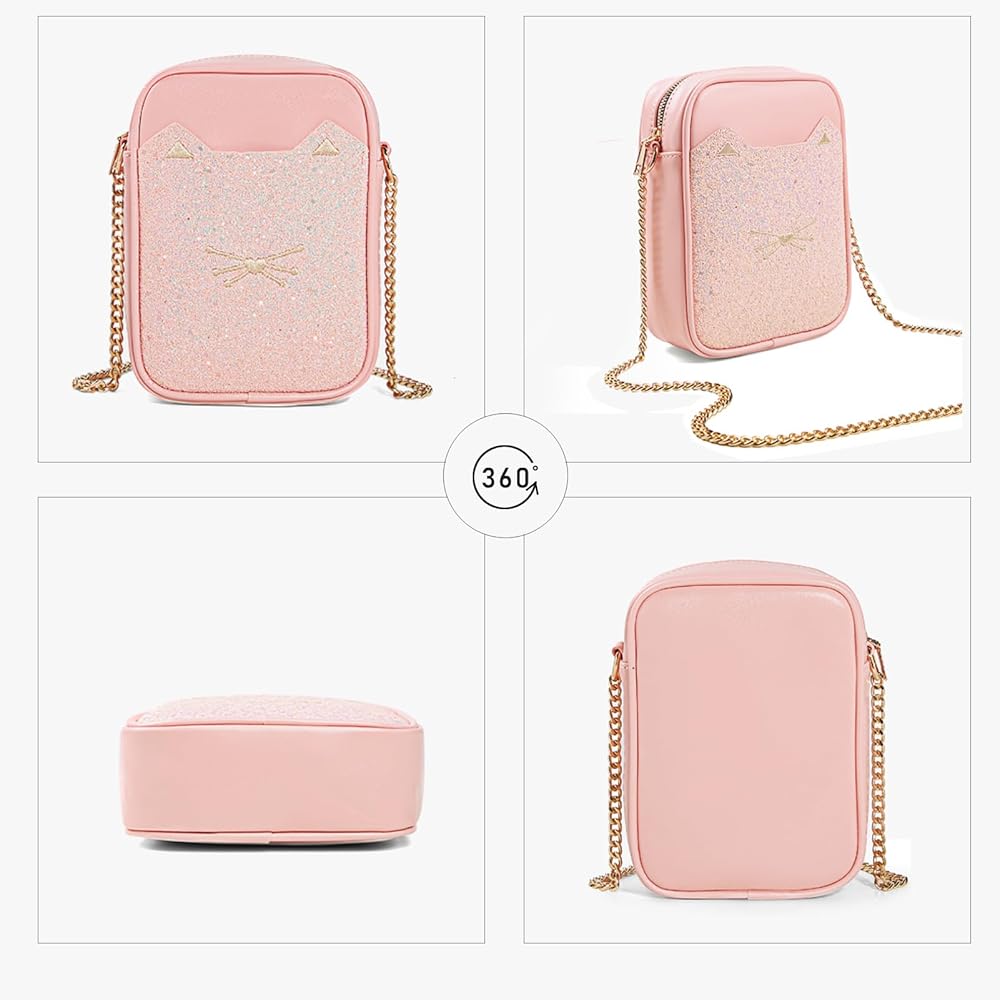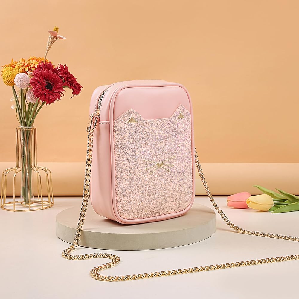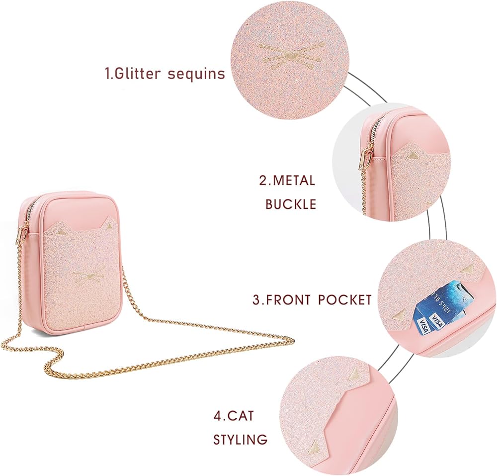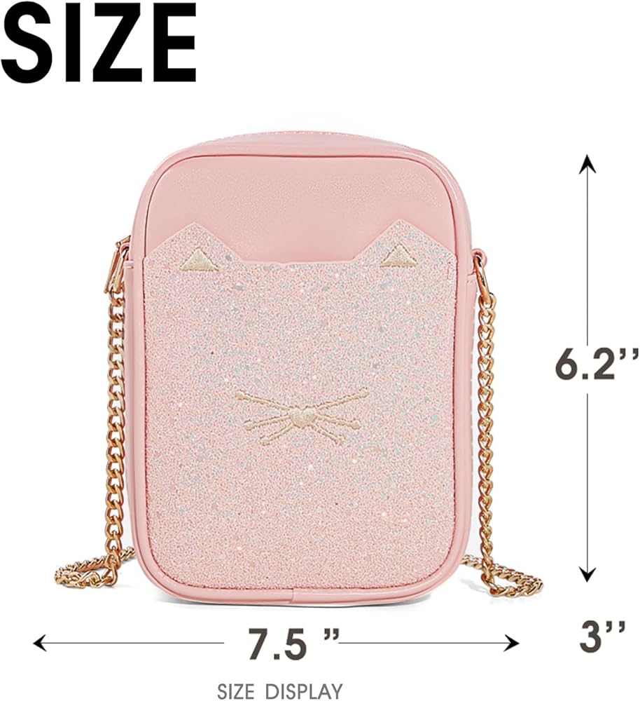 تصميم عصري وعملي: تصميم محفظة القطط الخاص بنا ذو اللمعان اللامع وتصميم وجه القطة اللطيف، يعد خيارًا ممتازًا للفتيات من سن 8 إلى 12 عامًا لارتدائه معه.
