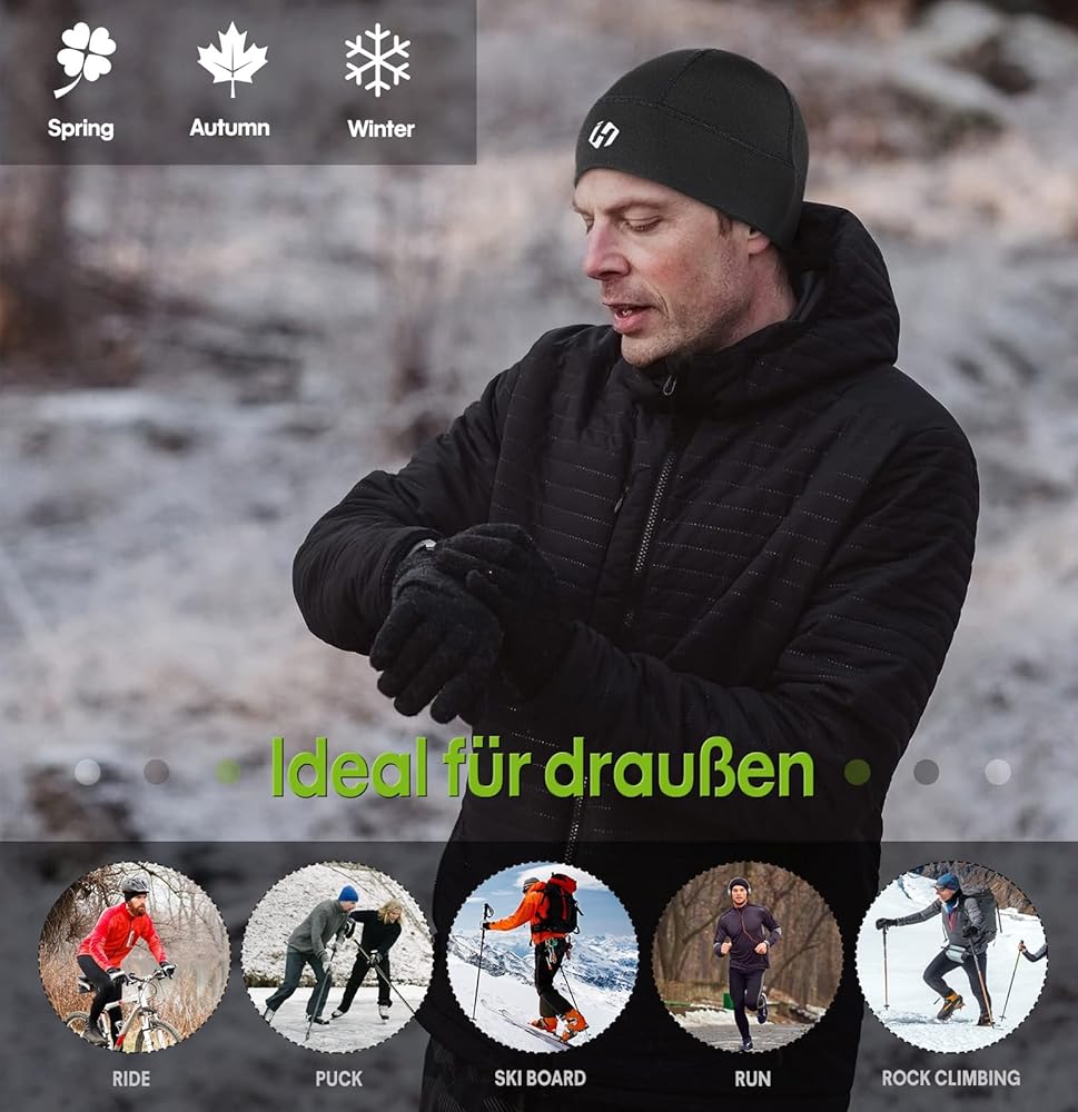 مثالية للارتداء اليومي: القبعة الرياضية للرجال مثالية لركوب الدراجات والتزلج والجري والمشي لمسافات طويلة والتزلج على الجليد وهوكي الجليد وغيرها من الأنشطة الخارجية. في نفس الوقت الذي تكون فيه قبعة ركوب الدراجات تحت الخوذة أو بطانة الخوذة، فإن هذه القبعة الشتوية للرجال هي أيضًا خيار مثالي. بوزن 42 جم/0.09 رطل فقط، يمكن طيها بسهولة ووضعها في جيبك أو حقيبة حزامك.