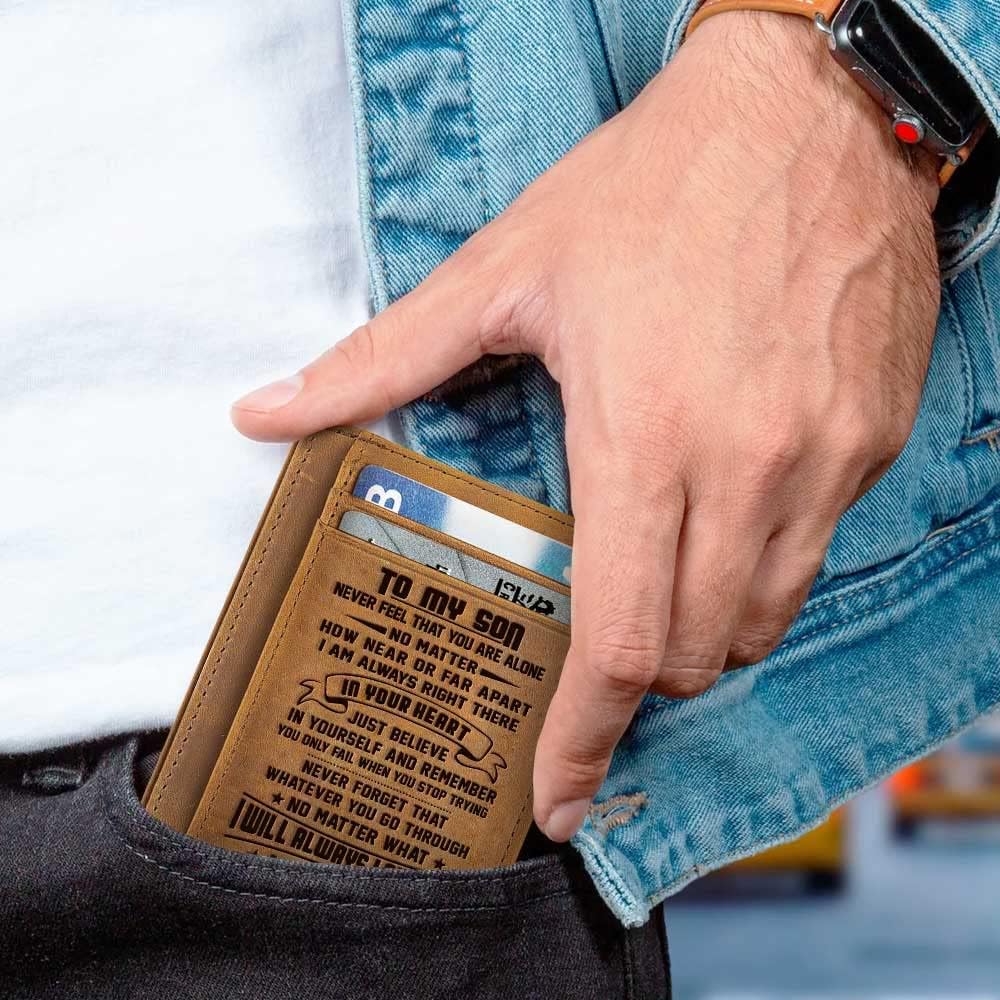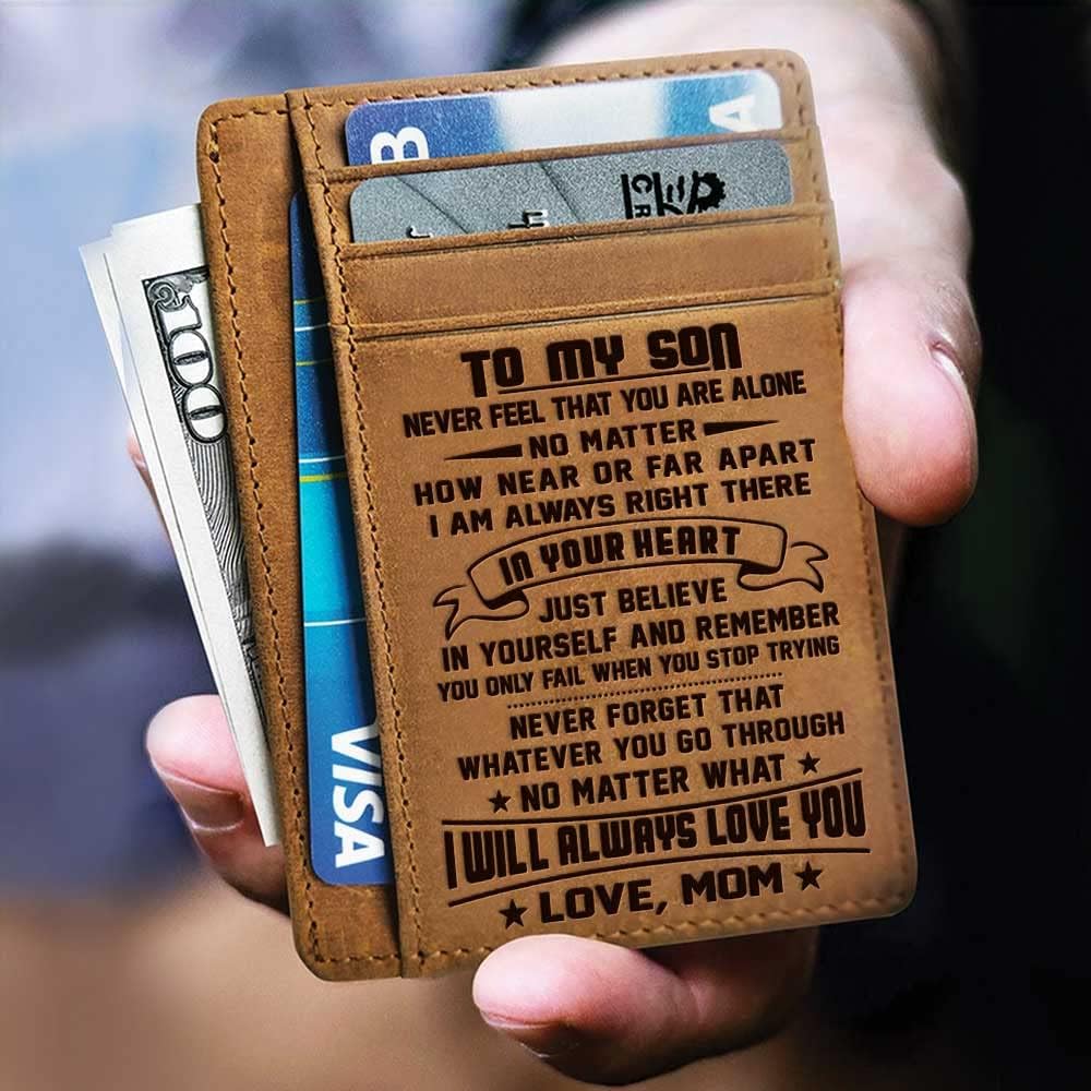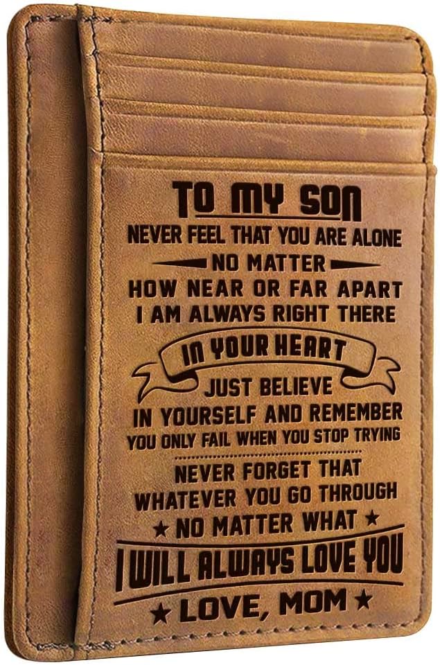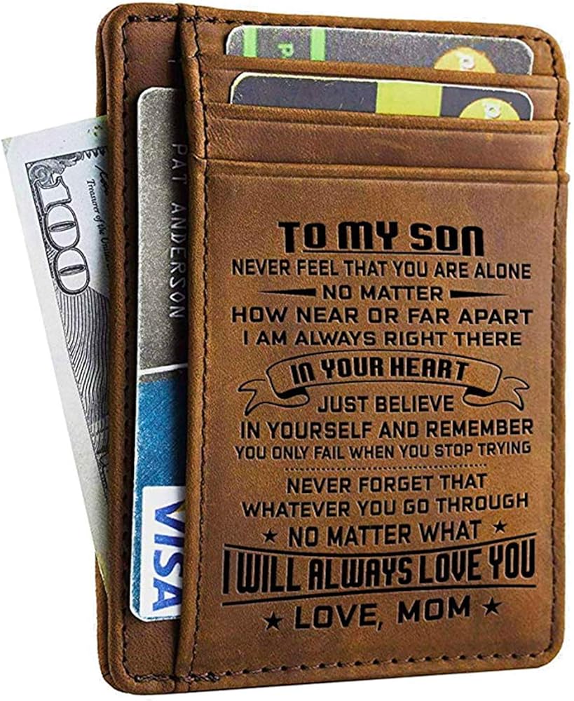 هدايا عيد الحب، التخرج، هدايا عيد ميلاد للابن من الأم، إلى ابني محفظة جلدية محفورة، هدايا للرجال، محافظ جلدية للرجال، هدايا محفظة الجيب الأمامي، محافظ رفيعة الحد الأدنى للرجال