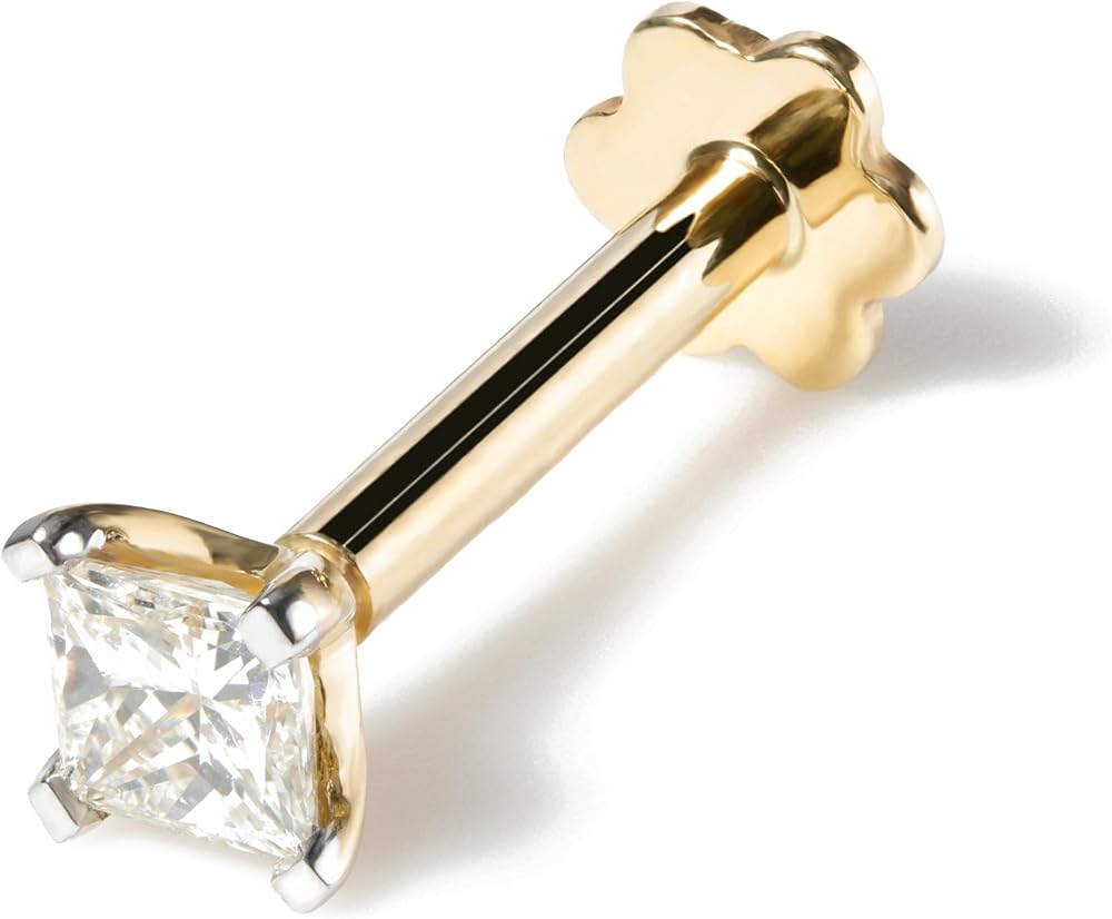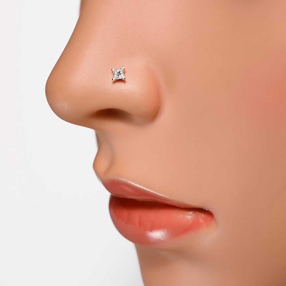 ذهب أصفر صلب عيار 14 قيراط: دبوس الأنف هذا مصنوع من الذهب الأبيض الصلب عيار 14 قيراط. إنه مطلي بالروديوم مما يمنحه لمعانًا إضافيًا ويجعله مقاومًا للخدش. هذه القطعة الخالية من النيكل مثالية لذوي البشرة الحساسة.
