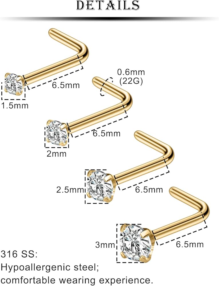 • اختيار مثالي للهدايا - مجوهرات ثقب الأنف الماسية الرائعة على شكل حرف L هي هدايا مثالية لأمك، أو أختك، أو صديقتك، أو زوجتك، أو ابنتك، أو صديقتك في حفلات الزفاف، أو أعياد الميلاد، أو الكريسماس، أو عيد الحب، أو عيد الشكر، أو الذكرى السنوية، أو الحفلات، أو عيد الأم. ستضيف مجموعة حلقات الأنف الأنيقة هذه لمسة نهائية مثالية لمظهرك.