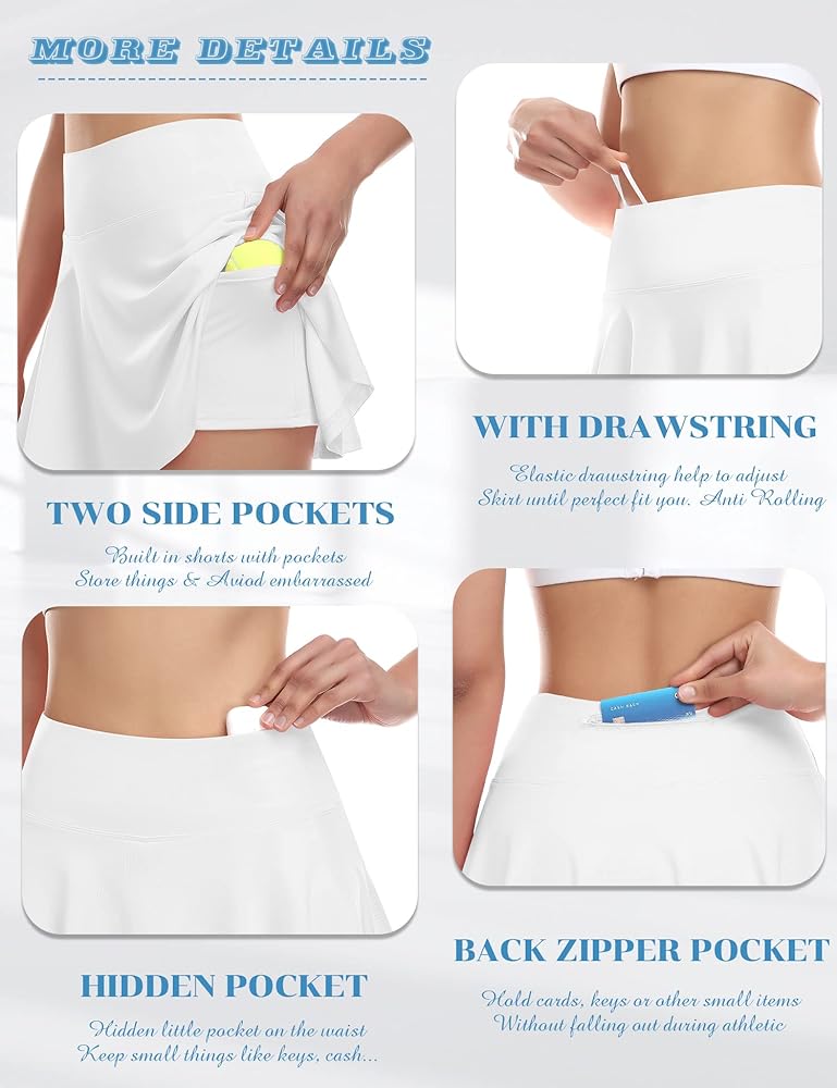 تنانير التنس النسائية مع جيوب السراويل