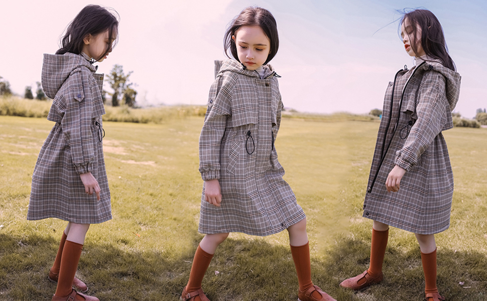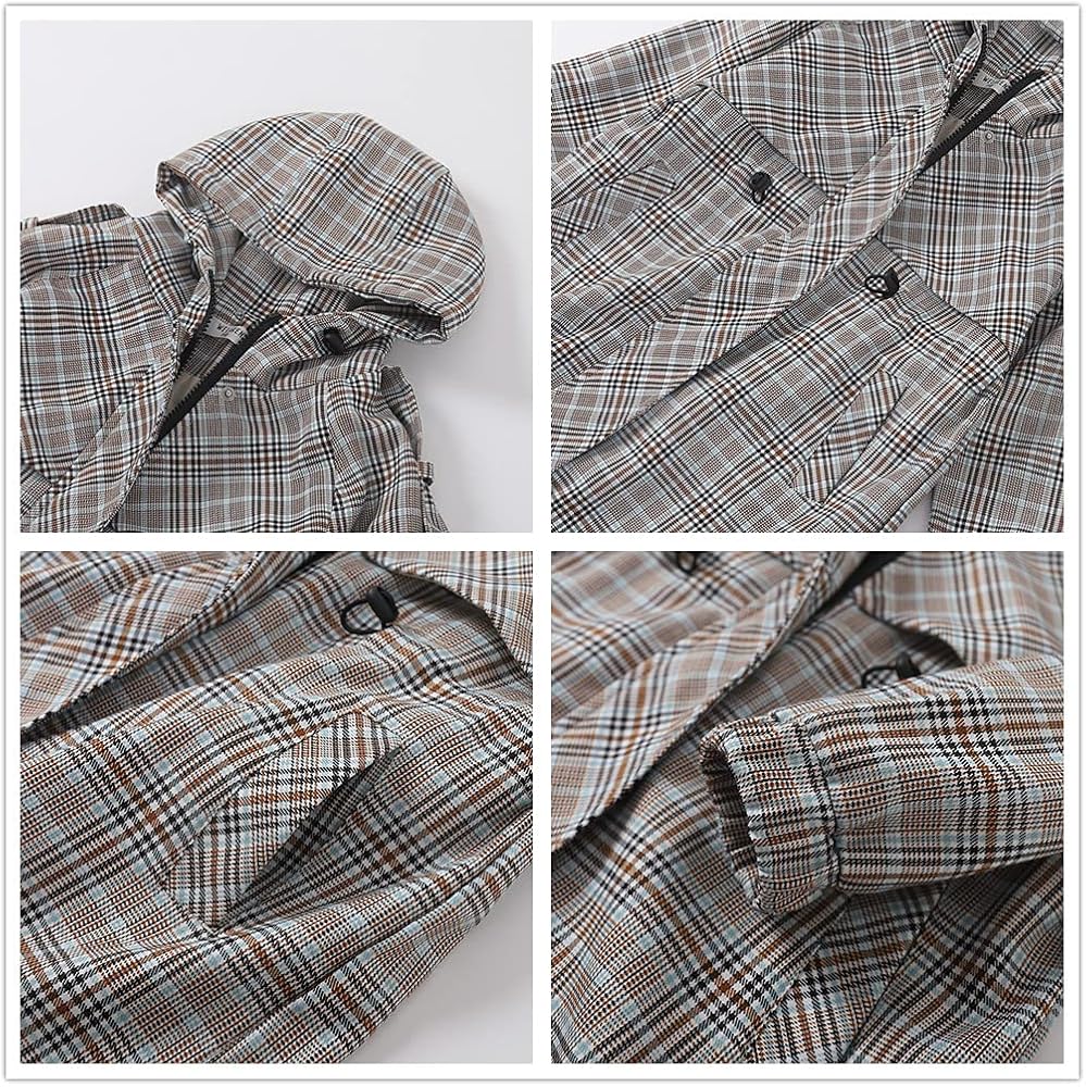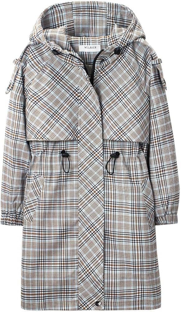 WELAKEN's plaid trench coat :Breathable, skin-touch and Thick fabric,you can adjustable hooded and waist drawstring fit,slim fit your body.