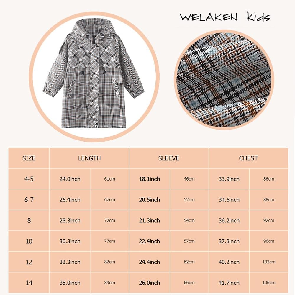 WELAKEN's wonderful soft trench coat for every day wear, perfect for school or any occasion. It has a hooded and side pockets to keep your girl or boy warm.