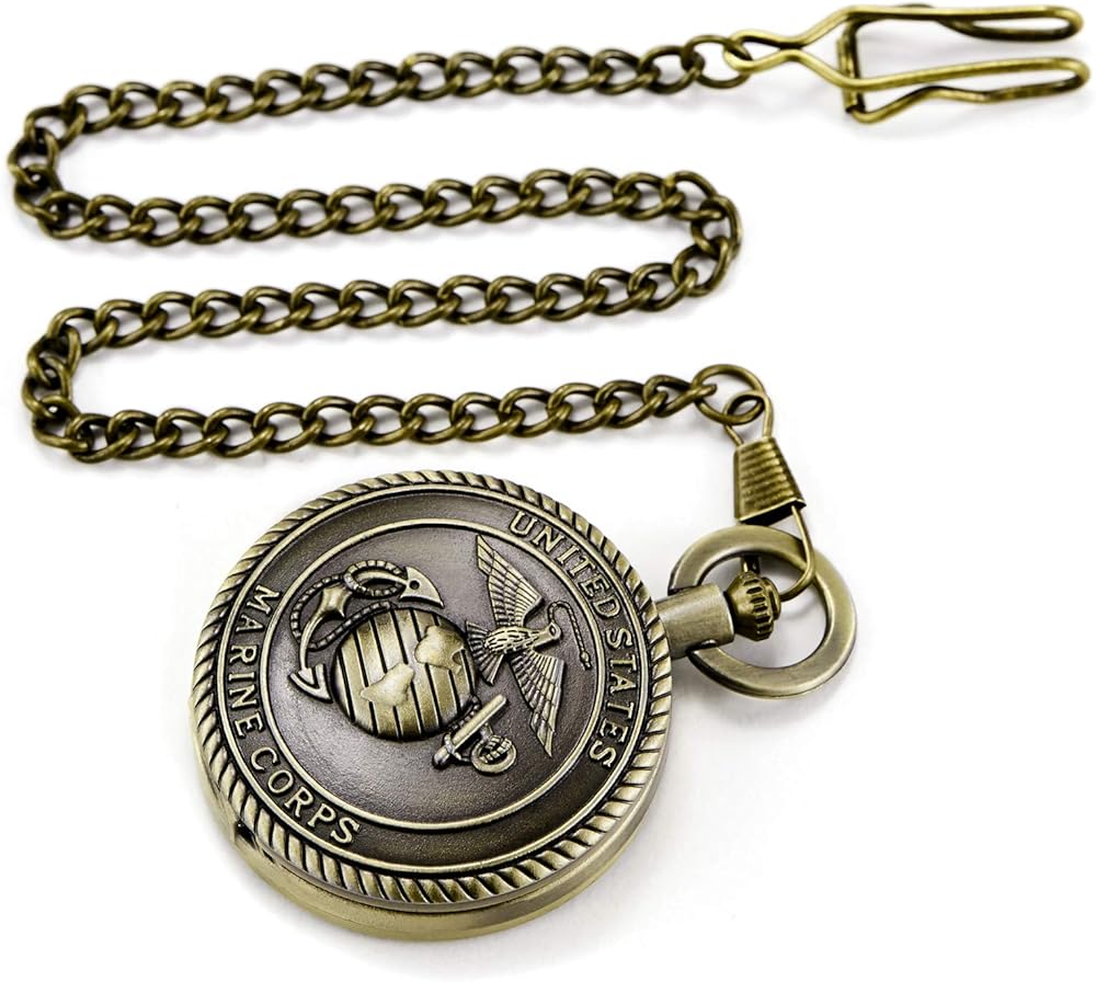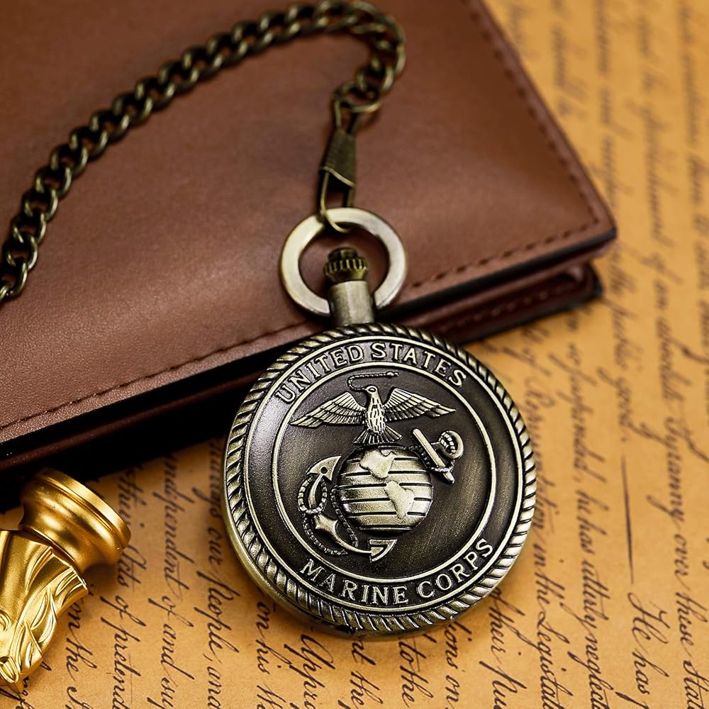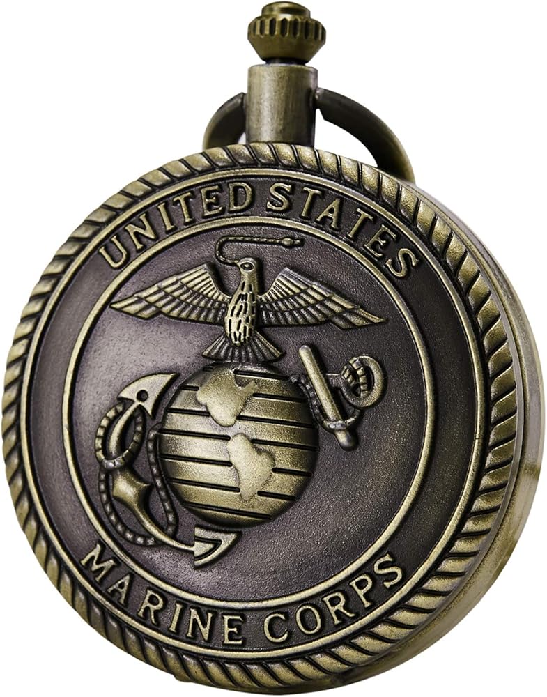 تصميم UINQUE - جراب بتصميم على شكل مشاة البحرية الأمريكية بتصميم برونزي، قرص أبيض مع ساعة مخرفة، دقيقة، عقارب ثوان، سهلة لعرض الحركة. التصميم لا يبدو فقط عتيقًا ومميزًا، بل يجعلك أيضًا نؤمن بالعيش بحماس.