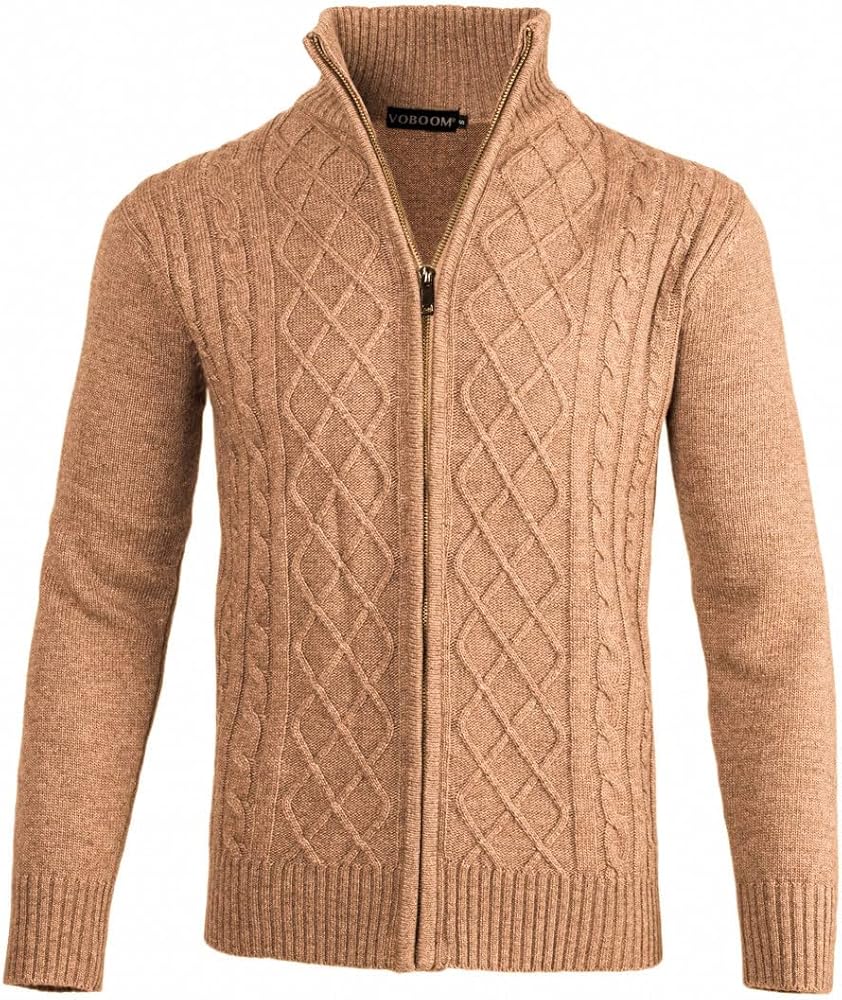 سترة VOBOOM الرجالية الكاجوال بياقة واقفة محبوكة بسحاب سترة سترة