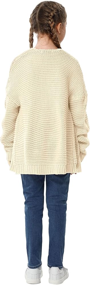 • الميزات: السترة الصوفية هي المفضلة لدى فتياتنا! سترات صوفية مفتوحة من الأمام للفتيات، نسيج كابل ملتوي، لون ثابت، فضفاض، سترة صوفية مكتنزة، ناعمة جدًا ودافئة للخريف والشتاء.