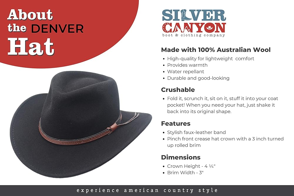 - هيكل من الصوف - مصنوع من الصوف المتين القابل للسحق ليمنحك أزياء رعاة البقر الكلاسيكية المستوحاة من الخارج وارتداء يدوم طويلاً.