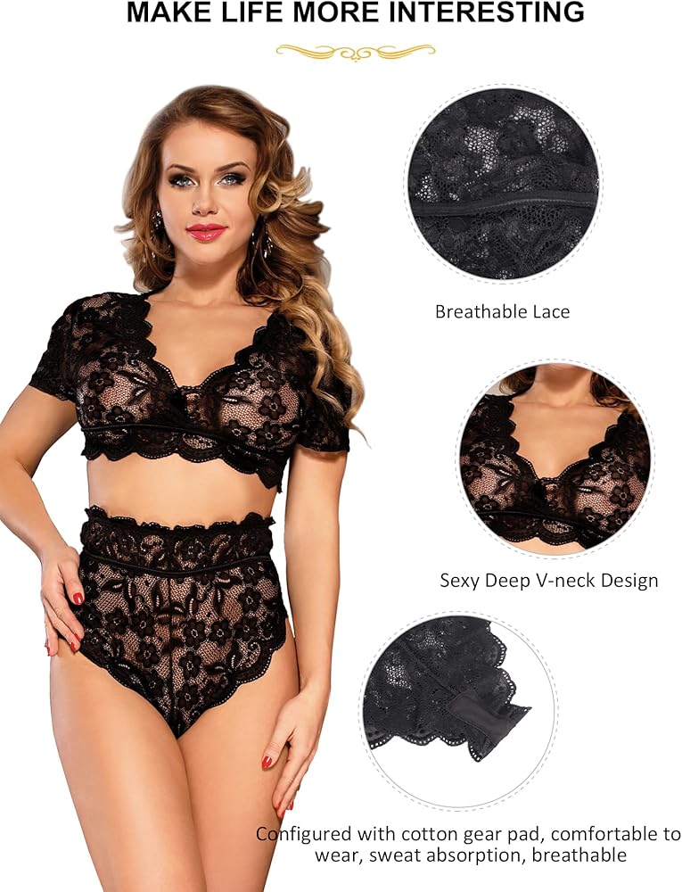 • 【Unique Design】-- Short sleeve design easily help you hidden arm of meat. High waist lace panty can helping to conceal mommy tummy, make you confident in front of your partner.
