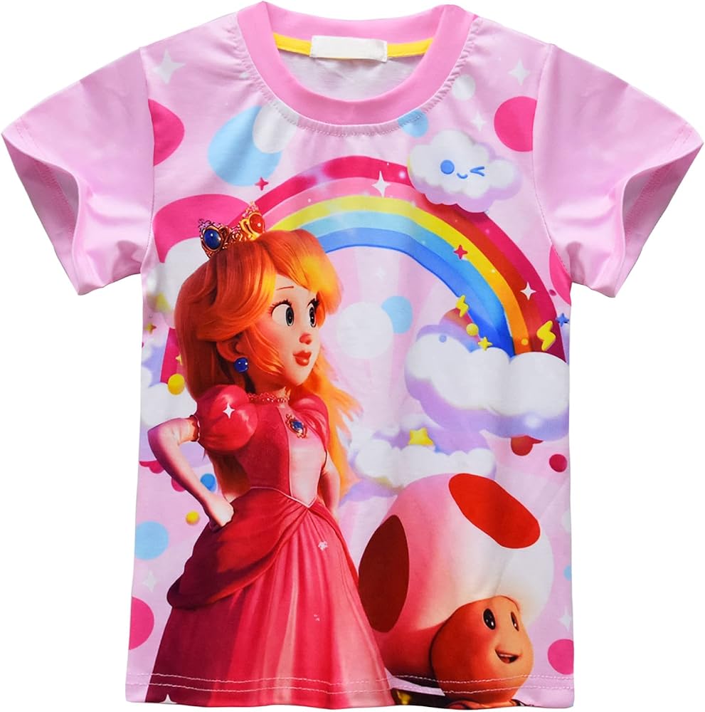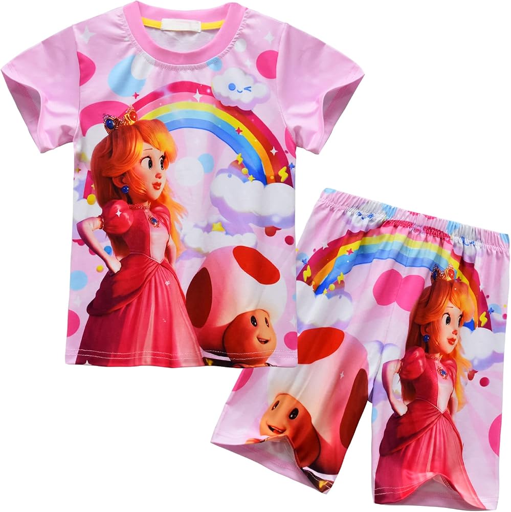 • Cute Cartoon Princess Peach Graphics Print ,Your Girls Will Love The Short Set Clothes.