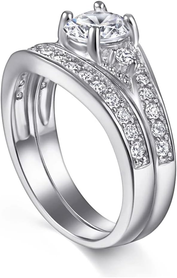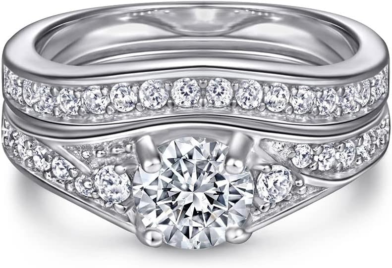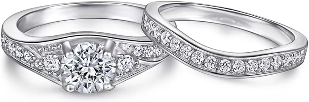 • 【تصميم فريد】: مجموعة خواتم زفاف مويسانيتي مكونة من قطعتين. مركز خاتم الخطوبة مصنوع من مويزانايت مستدير عيار 1 قيراط محاط بأحجار جانبية لامعة من الزركونيا المكعبة 5A. مع خاتم زفاف مويسانيتي منحني. جميع المويسانتي هي مويزانايت وضوح D اللون VVS1. النمط الفريد يخلق مظهرًا أكثر جمالاً، ويضيف التألق والمظهر المذهل ليد العروس.