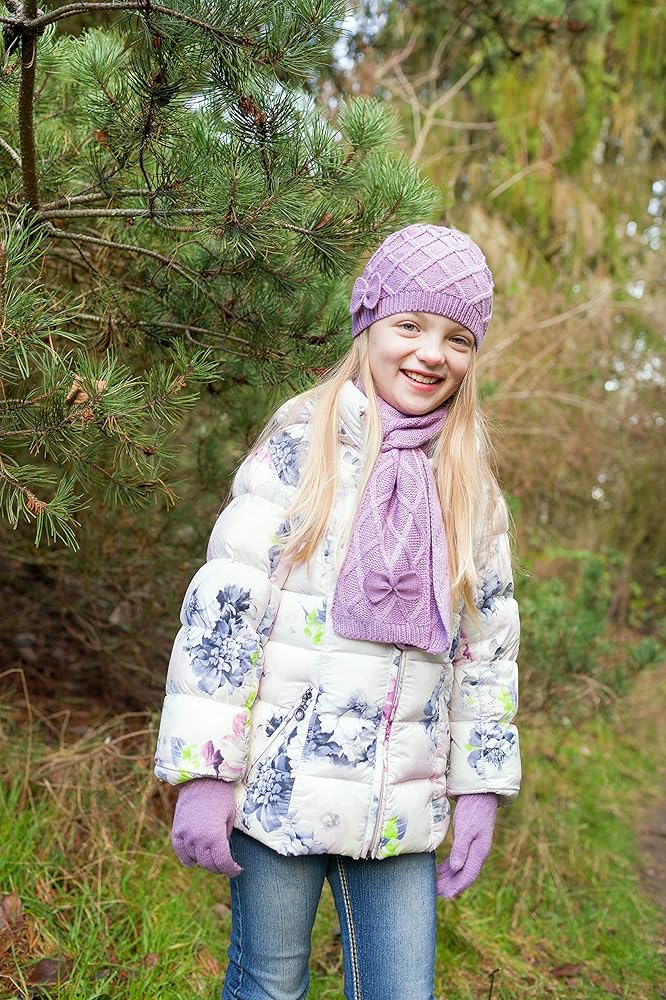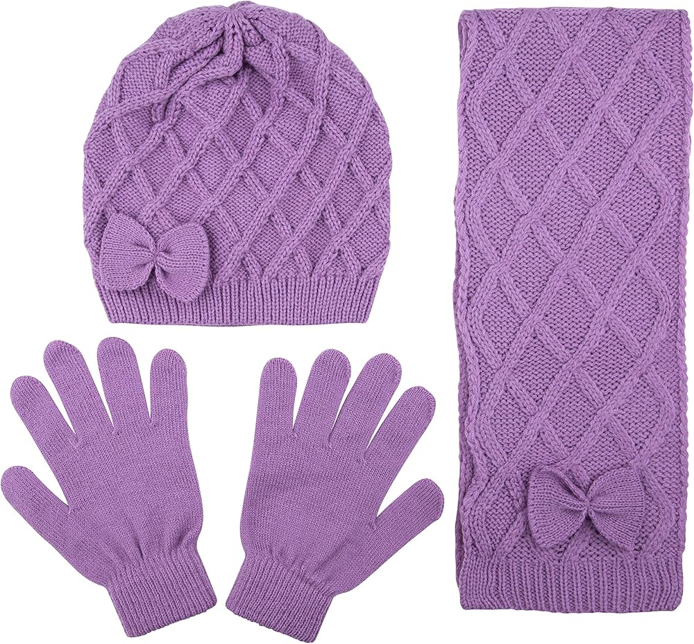 Kids Criss Cross Knit Winter Hat with Bow, Scarf and Glove Set for Girls
