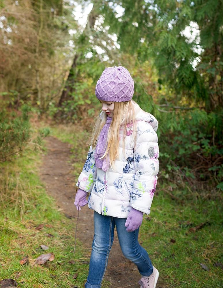 SIZE – 7 ½ inch (19 cm) hat width recommended for children 5 to 9 years old. The scarf is 4 ¾ x 55 inches (12 cm x 140 cm) and the gloves are 6.5 inches (17 cm) from fingertip to the bottom of the cuff. The quality acrylic yarn provides stretch for a comfortable and cozy fit. PLEASE check your child's head circumference for the proper fit.