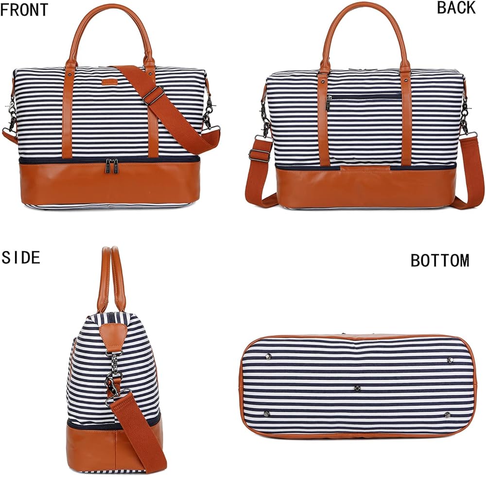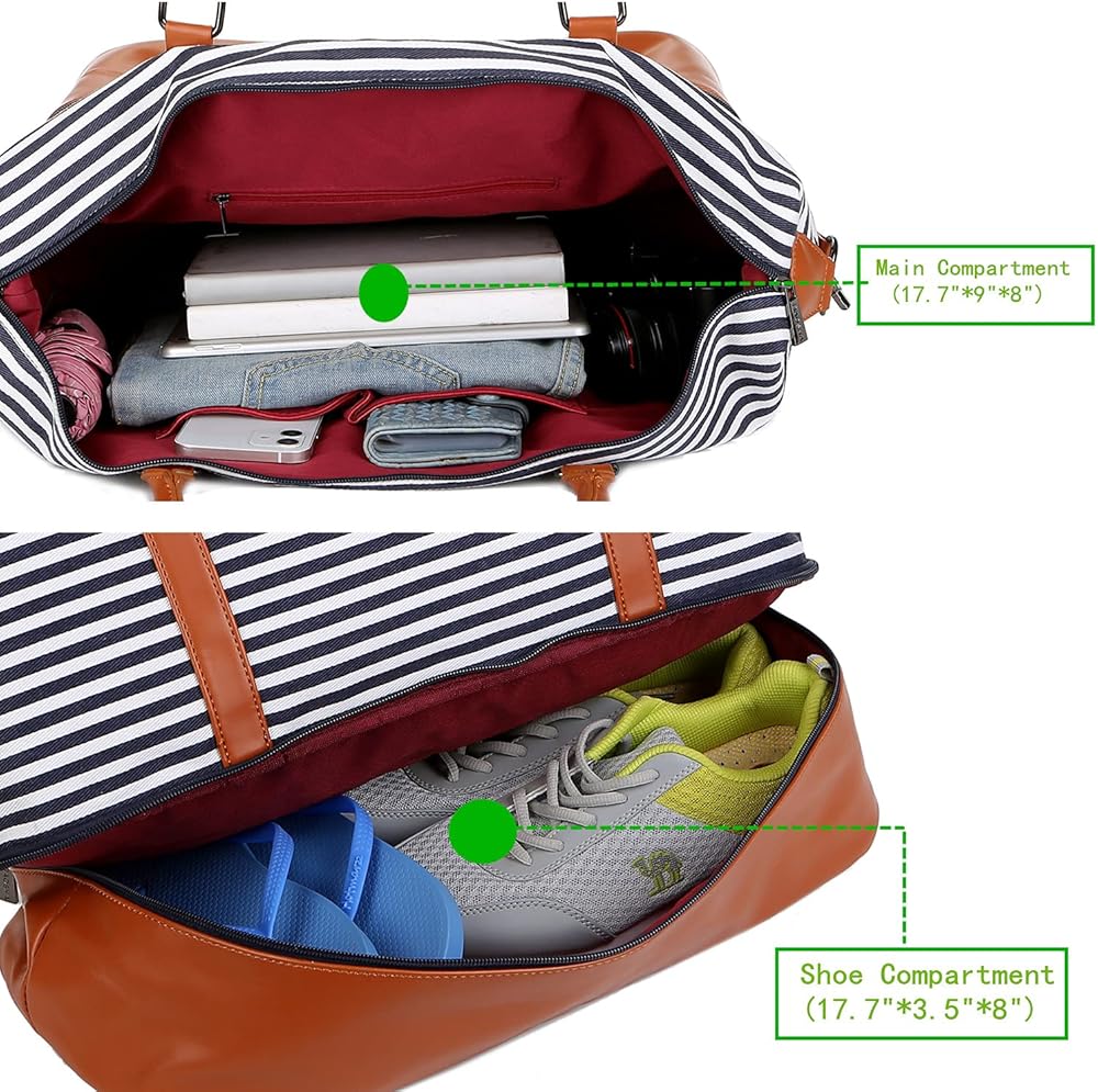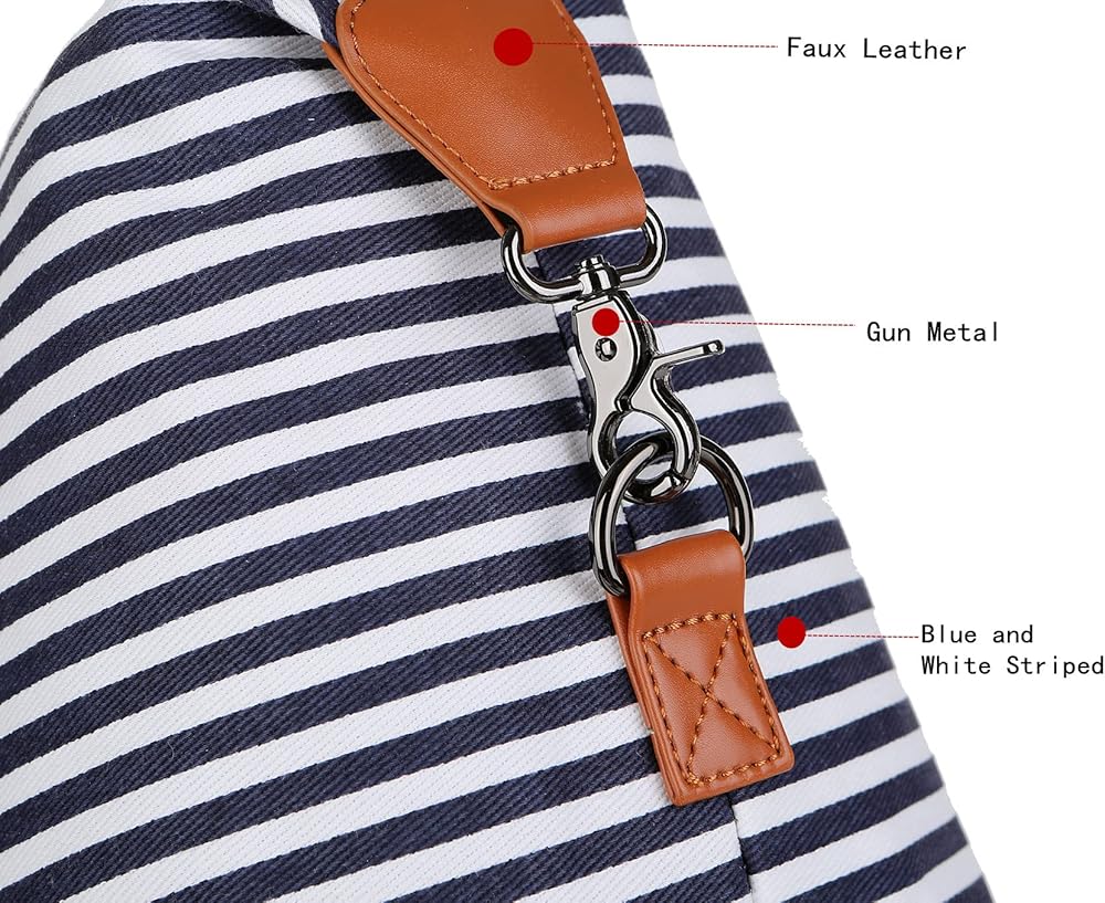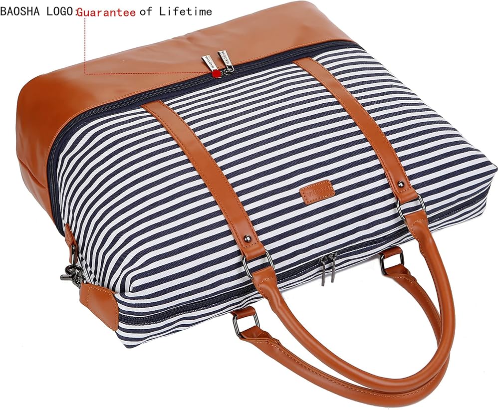 باوشا شنطة يد كبيرة توت قماشية للسفر وعطلة نهاية الاسبوع للنساء من اتش بي-28 (شرائط زرقاء مع جيب للحذاء)، ازرق، 16 × 12 × 8 انش، عصرية/ملائمة, أزرق, 16 x 12 x 8 inch
