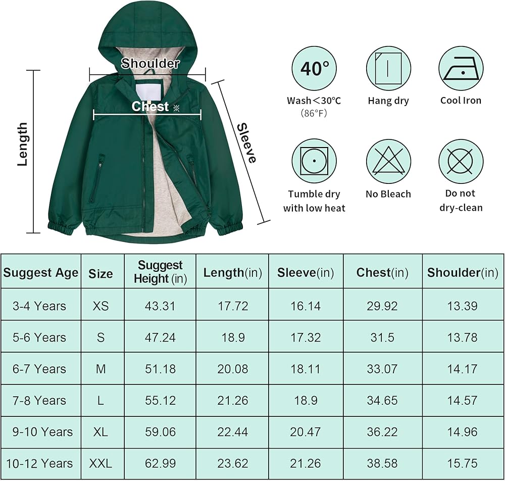 راحة فائقة، طوال اليوم - سترة المطر للأولاد لدينا مصنوعة من البوليستر بنسبة 100% مع بطانة من القطن الناعم. باستخدام نسيج ذو ملمس قطني 50D، تتمتع السترة الواقية من الرياح بمقاومة أعلى للتآكل ومتانة، مع تقديم مظهر أكثر أناقة وسلاسة.