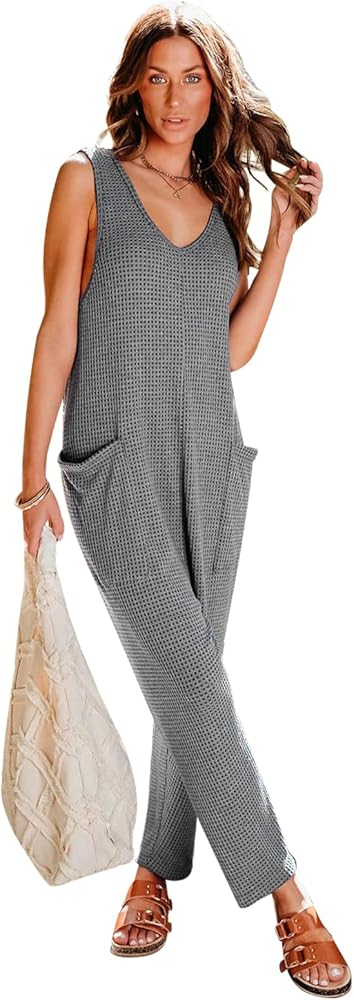👗تصميم أنيق: يتميز برقبة واسعة وخط عنق عميق على شكل حرف V، ملابس نوم بدون أكمام مع جيوب جانبية وسروال فضفاض واسع الساق يوفر مظهرًا أنيقًا. مثالية لخزانة ملابسك الخريفية.