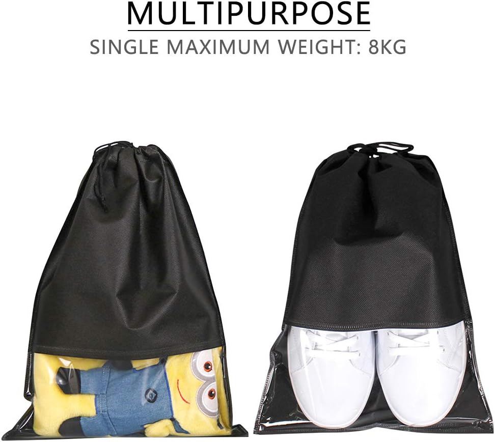 • 【متعددة الوظائف】 حقائب أحذية رائعة لتنظيم وتخزين الأحذية، والحفاظ على نظافة أحذيتك ونظافة؛ كما يمكن استخدامها كحقيبة ماكياج، وحقائب أحذية للسفر، وحقائب للغبار للأحذية، وحقيبة أدوات المرحاض، وحقائب التعبئة، وإكسسوارات صالة الألعاب الرياضية، وحقائب غسيل للسفر للاستخدامات الأخرى.