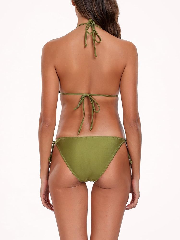 Okewrio Two Piece Triangle Women's Bikini Set Halter Sexy Bathing Suits String Low Waisted Swimsuit