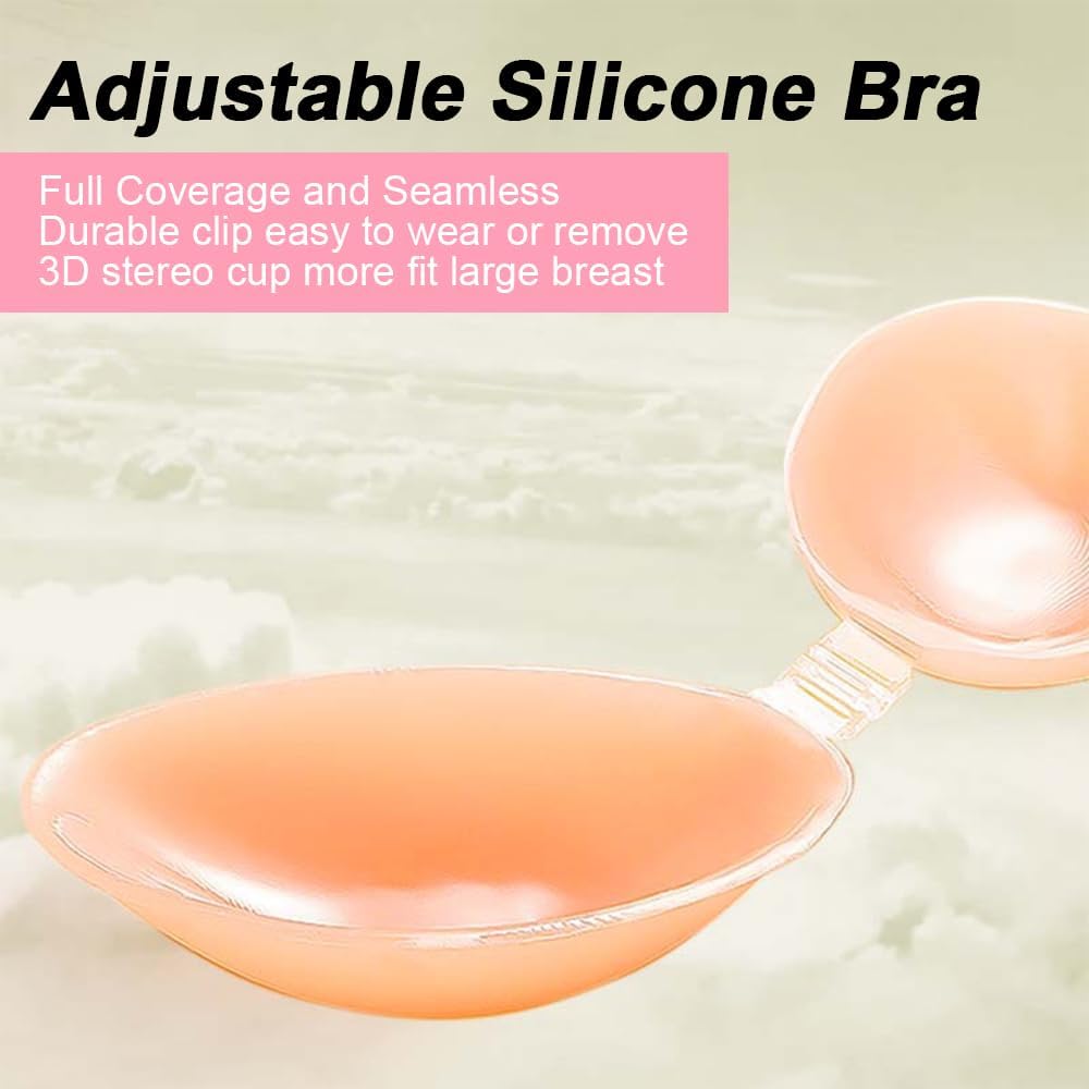 • 【Comfortable & Skin-friendly】The strapless bra is made of upgraded sticky harmless Bio-silicone and skin-friendly material, which is more sticky compared to other sticky boobs, can be reused without worrying about pilling, safe and non-irritating to the skin, won't cause any pain, providing you with a comfortable feeling.