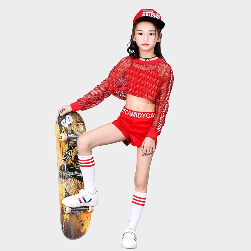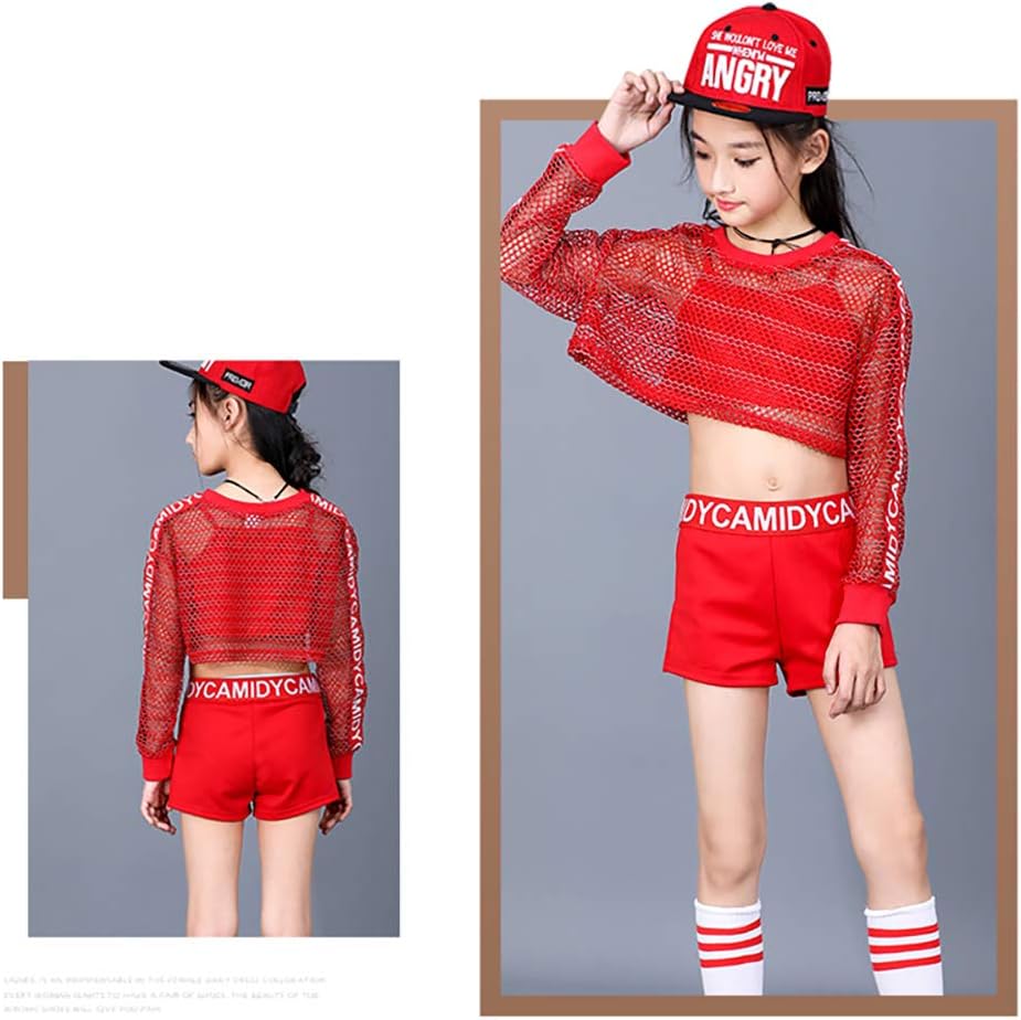 Features: cute crop tops for girls, loose fit, made of mesh fabric, match camisole, unique letters printed elastic waist & sleeve design. Vibrant red fully reflecting the passion and charm of dance