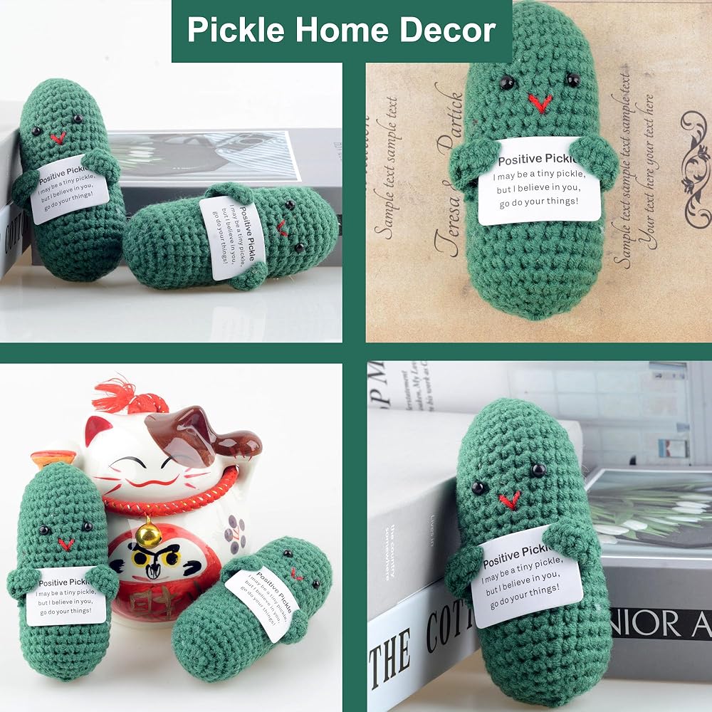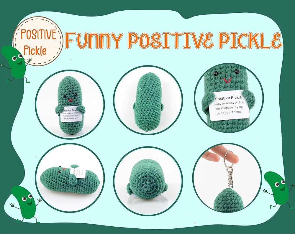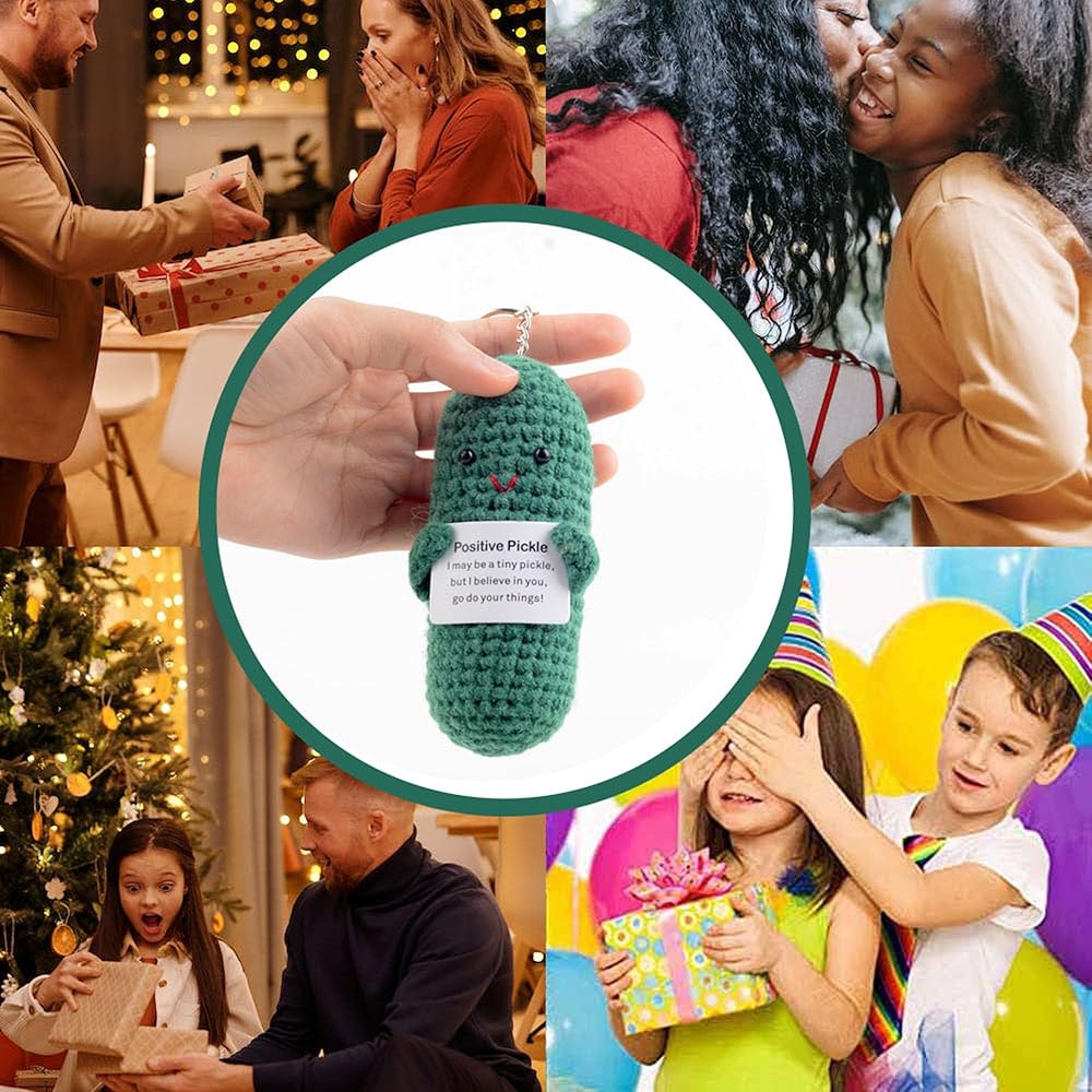 SUITABLE GIFT: You can give this positive knitted cucumber pickle as a gift to your family, friends, children on their birthday, Valentine's Day, Christmas, Thanksgiving, opening party, graduation queue and other occasions, it's a very special little gift, your family and friends will love it very much!