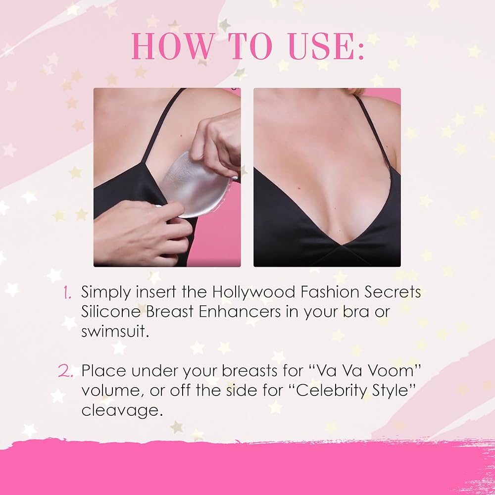 • Celebrity-Style Cleavage: Slip these flexible enhancers under your breasts or to the side for that instant "Va Va Voom" effect, perfect for any outfit