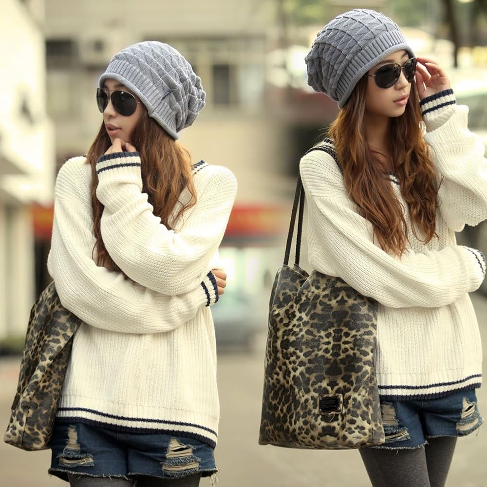 LOCOMO Women Girl Triangle Slouchy Knit Beret Beanie Hat Cap FAF028