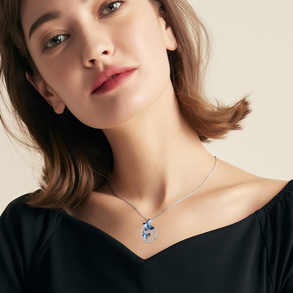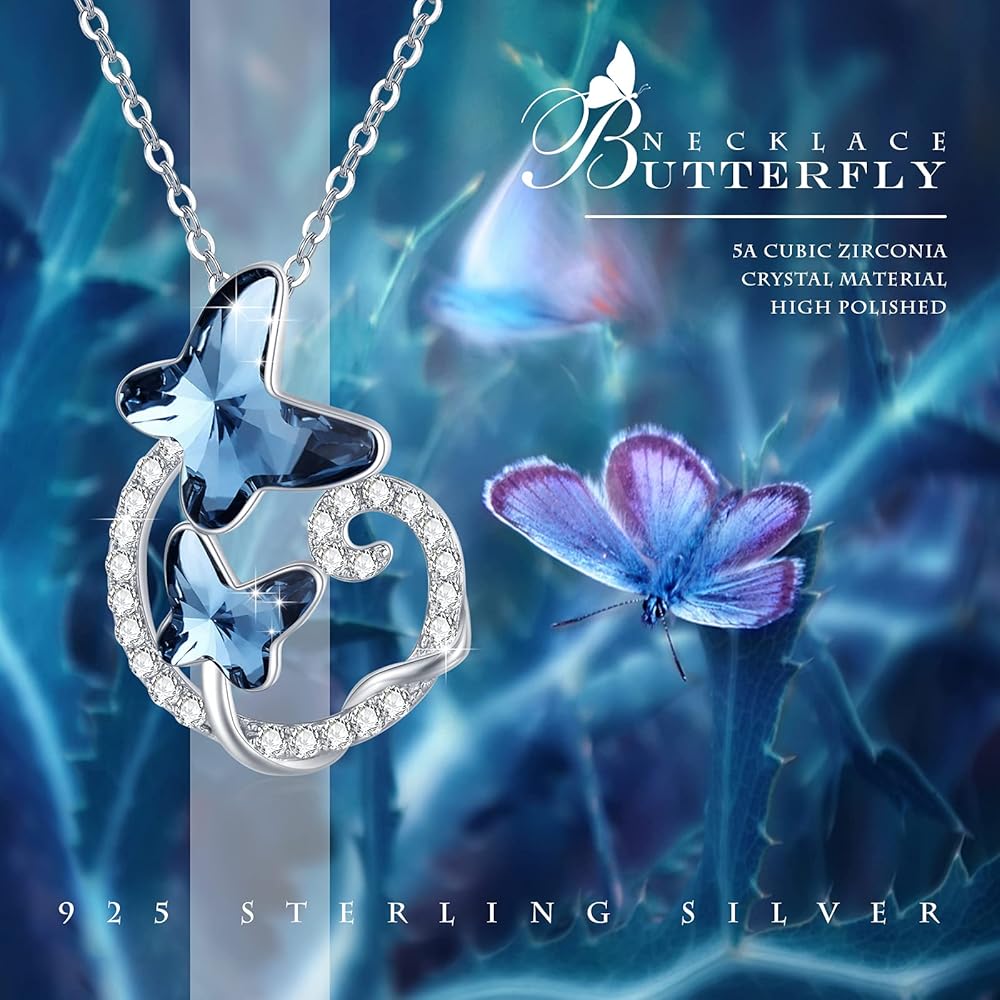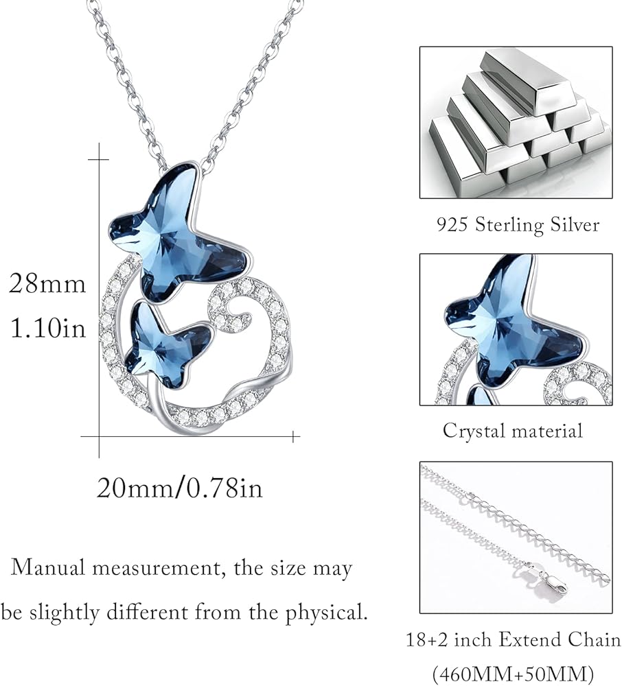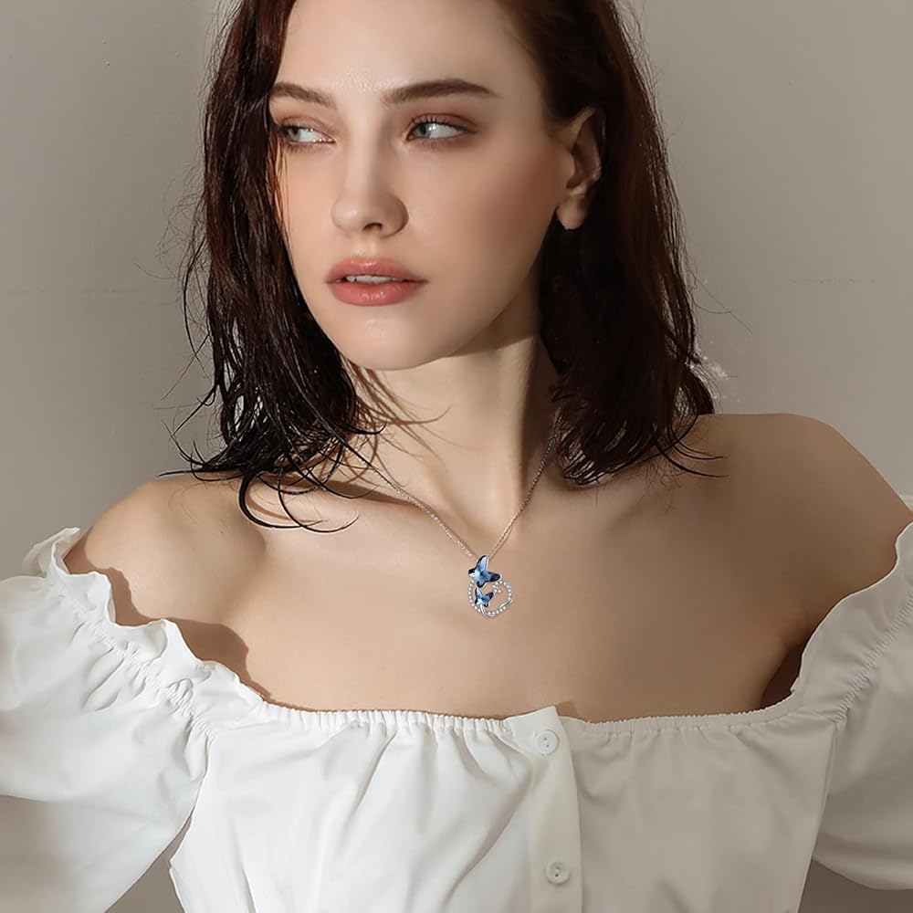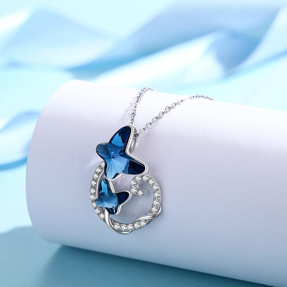 Blue Butterfly Crystal Pendant Necklace for Women: