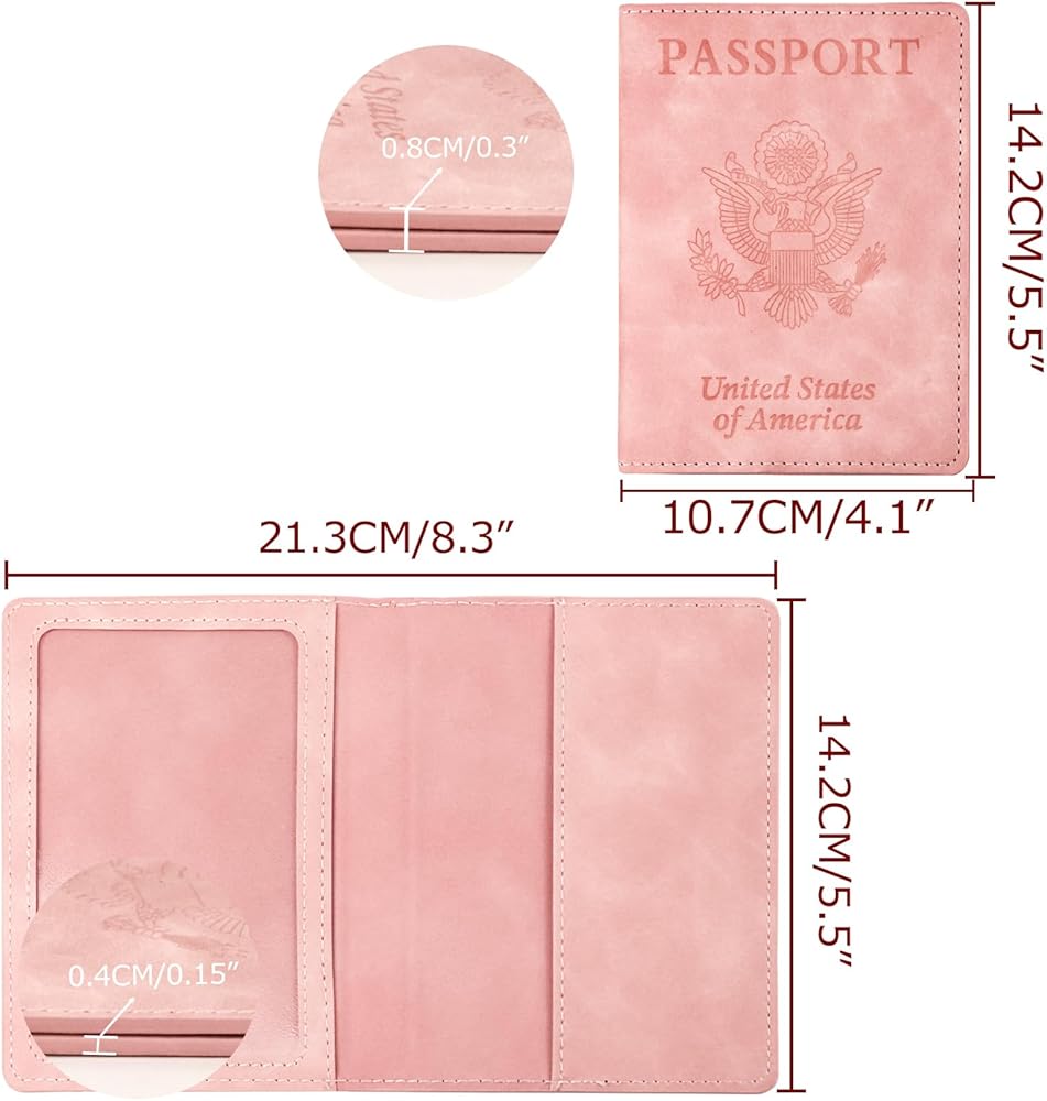 Material: Made from high-quality PU leather, our passport holder is durable and resistant to wear and tear. It provides a stylish and professional look, perfect for both business and leisure trips, easy to use and clean.