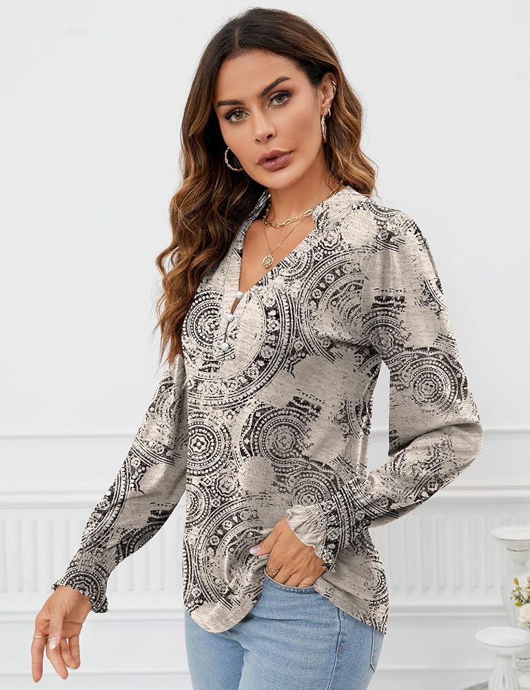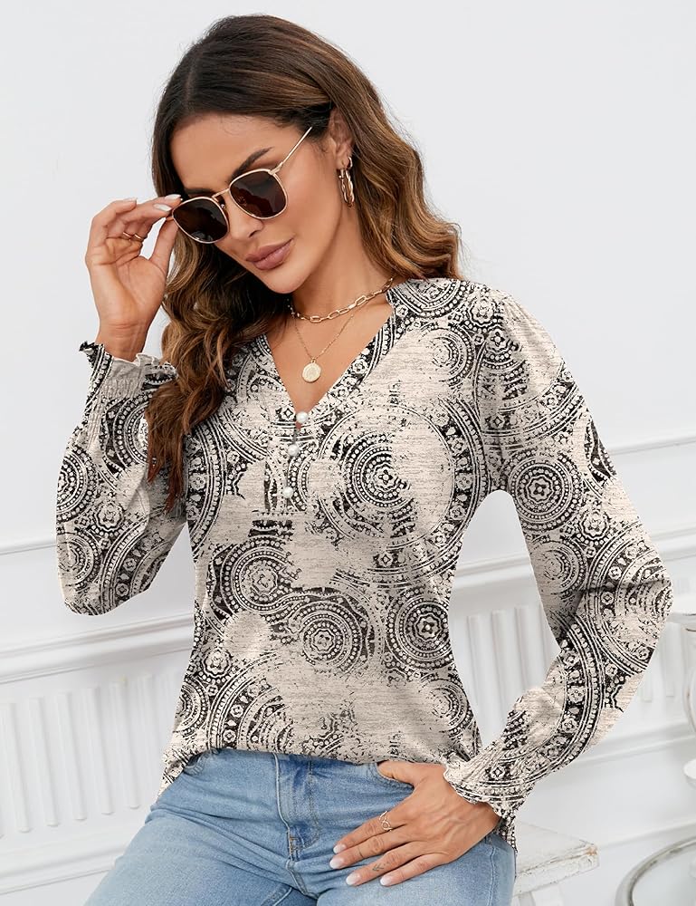 ☀مناسبات مناسبة: قمصان بأكمام طويلة منتفخة، هذه القمصان ذات الأكمام الطويلة ورقبة على شكل حرف V مناسبة للمنزل والعمل والرياضة والحفلات والعطلات وما إلى ذلك. قمصان الخريف هذه هي قطعة عصرية لا غنى عنها في خزانة ملابس المرأة.