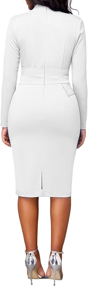 فستان الخريف الأبيض للنساء ريترو الكنيسة كم طويل الأعمال أنيق طول الركبة فستان غمد سبليت الظهر سستة لنادي الحفلات