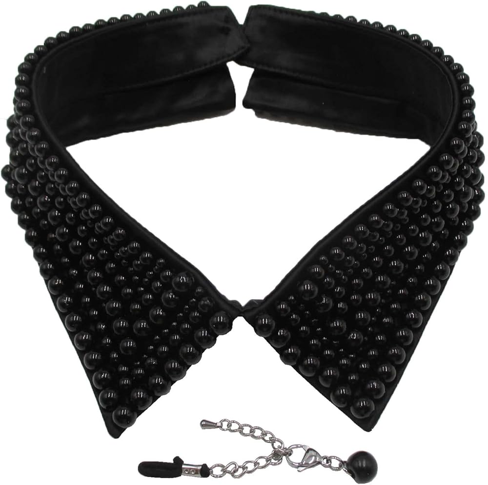 Trimscraft Statement Collar Necklace Black Choker Simulated Pearl Beaded Bib Detachable False Collar With Extension Chain Clothing Accessory for Women, Acrylic, No Gemstone