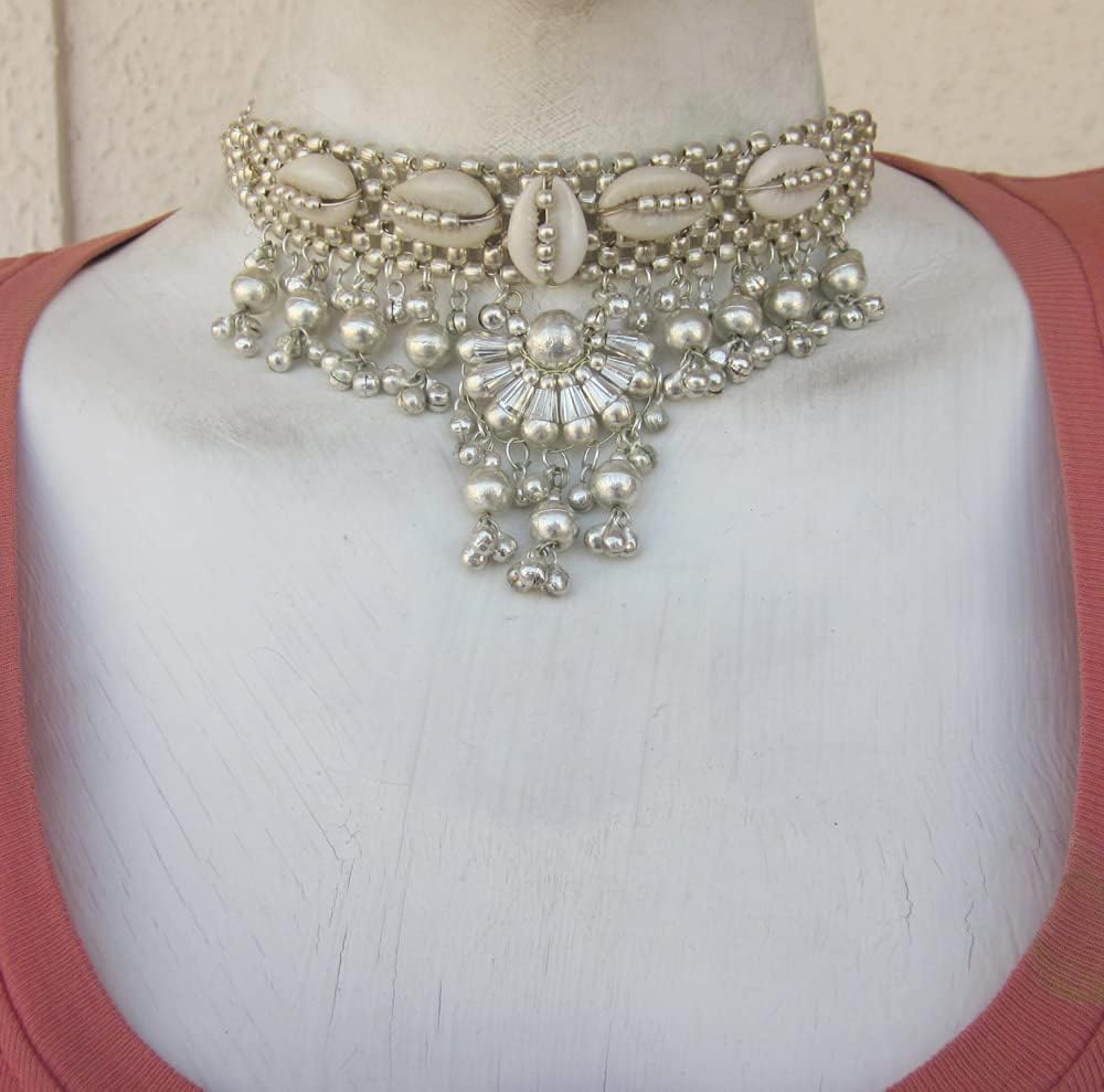 سلسلة ربط مطرزة يدويًا مع سلك فضي ألماني مع قلادة نحاسية مصبوبة بشكل معقد وسلسلة متدلية مطلية بالفضة بلمسة نهائية مؤكسدة عتيقة - عمل مكثف - منتج ممتاز بسعر أقل