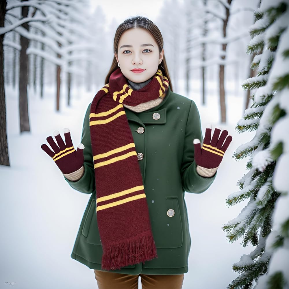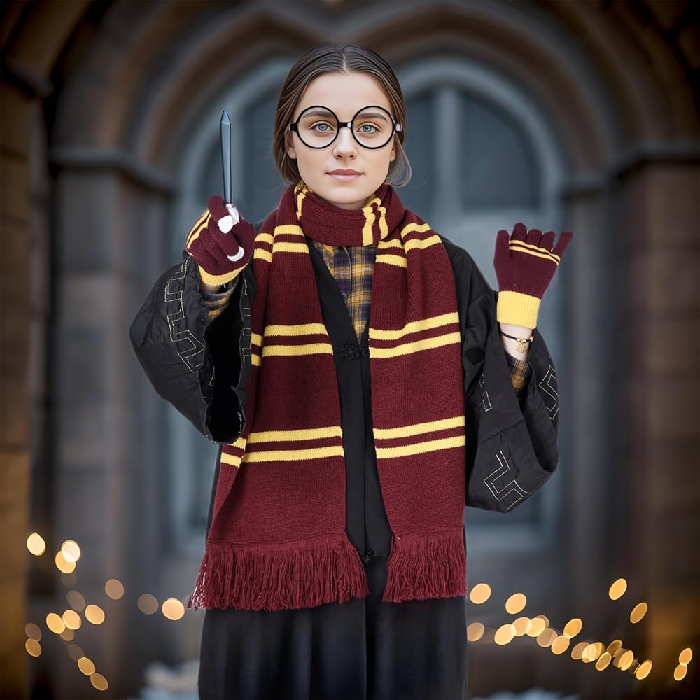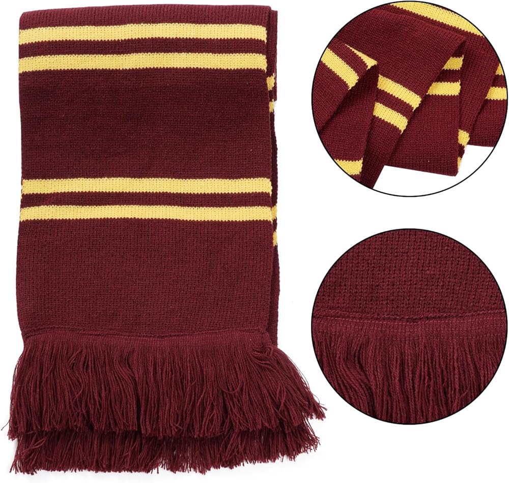 Classic Design: Designed with dark red and yellow stripes, simple and stylish, easy to match with your any costumes, such as sweater, uniform, robe, jackets and other clothes, easy to finish your cosplay party and make you warm and cozy on winter