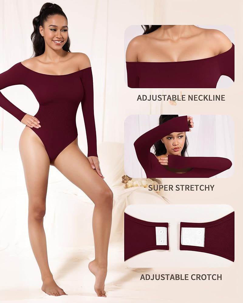 【ملابس مضلعة بدون خياطة】بدلة للجسم بأكمام طويلة للتحكم في البطن مصنوعة من نسيج فائق التمدد بتقنية سلسة، تمنحك أقصى قدر من حرية الحركة