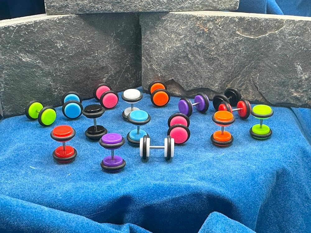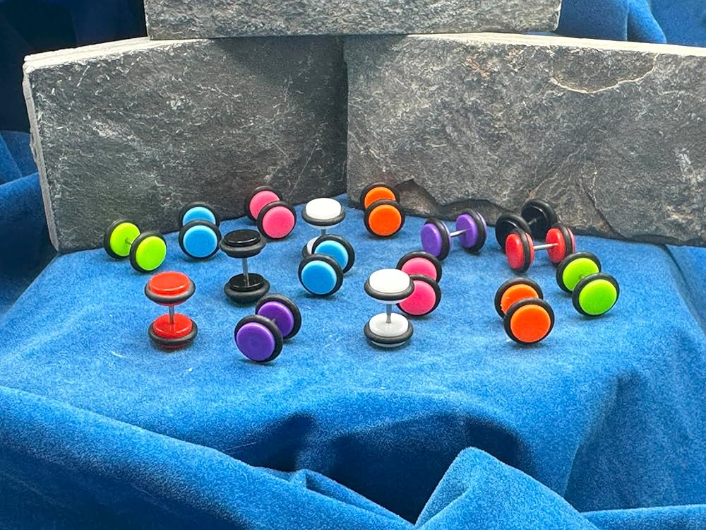 8 أزواج من الأقراط الاكريليك الحديد مسمار الغش وهمية المكونات أقراط 14 قياس الحديد و 00 قياس الوجه E562