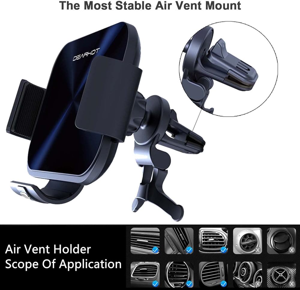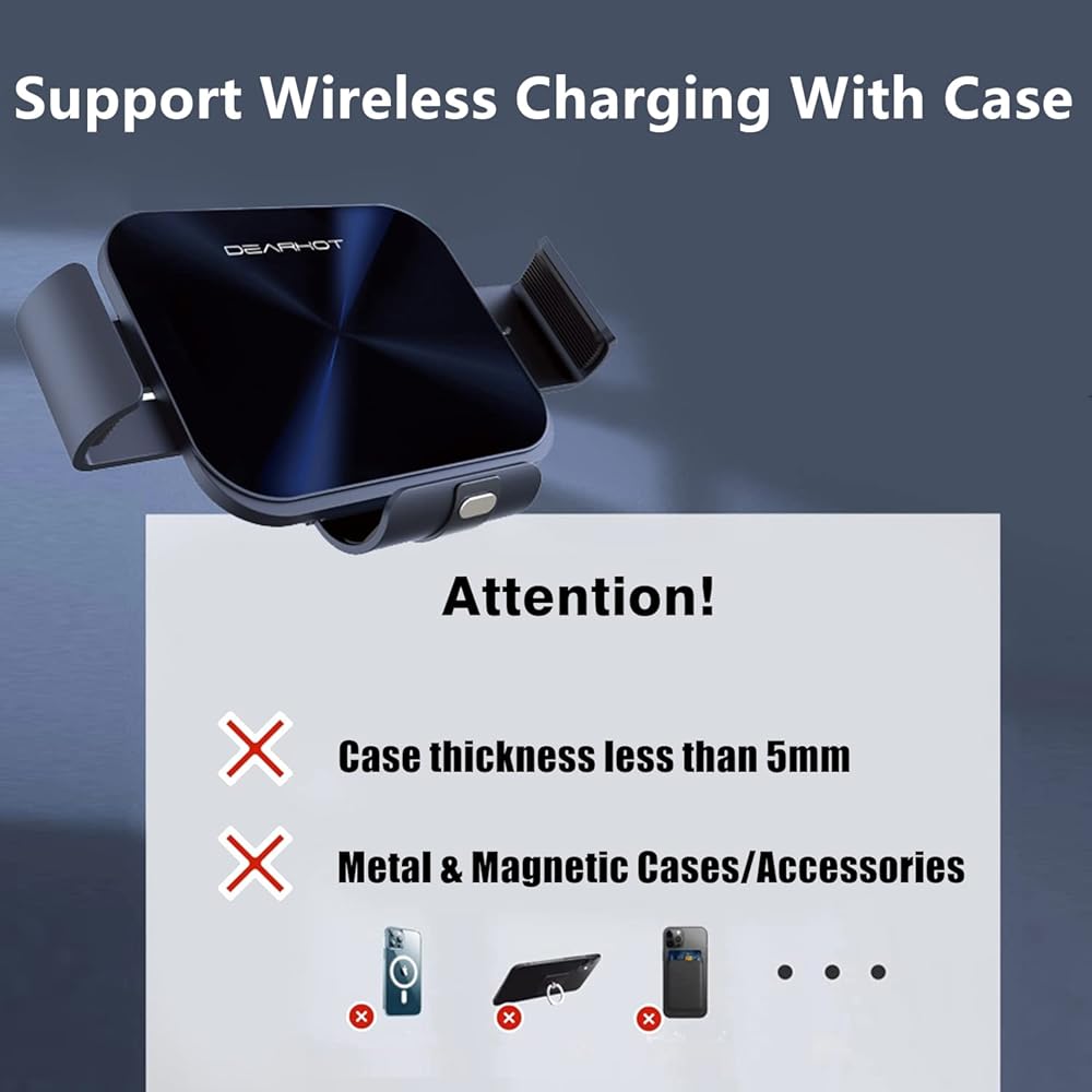 شاحن سيارة لاسلكي Qi وحامل: يجمع شاحن السيارة اللاسلكي Qi بين حامل هاتف فتحة التهوية وشاحن السيارة اللاسلكي في جهاز واحد. يمكن لشاحن الهاتف اللاسلكي Qi المزود بشريحة ذكية مدمجة أن يحمي هاتفك من الشحن الزائد والتيار الزائد والدائرة القصيرة ودرجة الحرارة المرتفعة وما إلى ذلك.