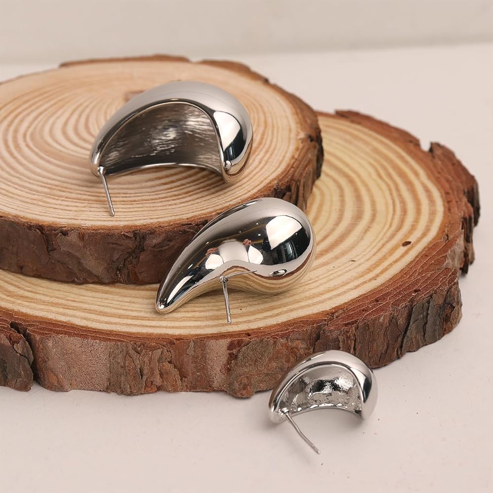 أقراط كرواسون بسيطة مكتنزة، شكل قطرة ماء ذهبية لامعة، سطح مرآة، تصميم كلاسيكي لا يتأثر بمرور الزمن، أنيق ولافت للنظر، أقراط يومية أساسية أساسية لكل امرأة وفتاة وسيدة.