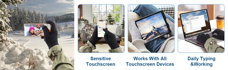 تصميم مريح لشاشة اللمس - تم تصميم القفازات الشتوية للرجال بأقمشة موصلة حساسة للغاية على أطراف أصابع الإبهام والسبابة، مما يسمح لك بالعمل على جميع الأجهزة التي تعمل باللمس، مثل الهواتف الذكية والتابلت وأجهزة الكمبيوتر وما إلى ذلك. استمتع بأفضل تأثير لشاشة اللمس في الطقس البارد دون القلق بشأن تجميد اليدين.