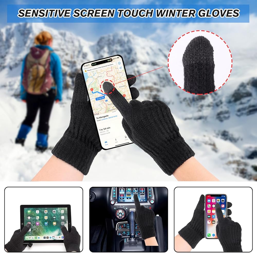قفازات شتوية دافئة لشاشات اللمس للرجال والنساء قفازات صوف مبطنة بالصوف مضادة للانزلاق للشاشات التي تعمل باللمس