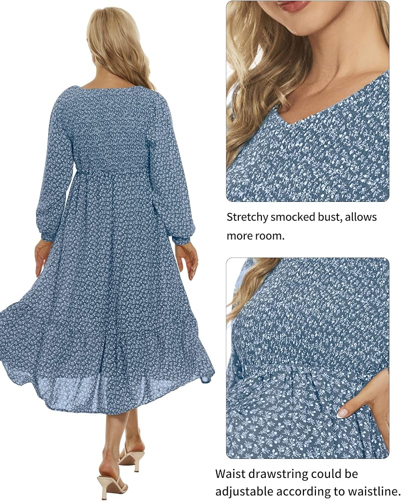 [ايه لاين وفضفاض] يمكن أن يحول فستان الحمل الطويل ذو الأكمام المنفوخة والزهور من اولويز سو سويت أي يوم إلى يوم جيد! فستان طويل فضفاض للحوامل بخصر مرتفع على شكل حرف A في الأمام يضفي مظهرًا رائعًا. مع فتحة جانبية مذهلة، من المؤكد أنها ستلفت الأنظار.