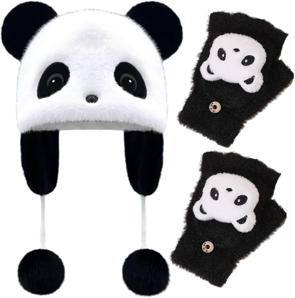 الباندا القطيفة قبعة الصياد في الهواء الطلق الدافئة غطاء حماية الاذن للنساء الفتات بوم الرباط رقيق يغطي الاذن متماسكة قبعة الشتاء الجمالية الدافئة القبعات + الباندا نصف اصبع الطالب الكتابة الوجه قفازات الاستخدام المزدوج
