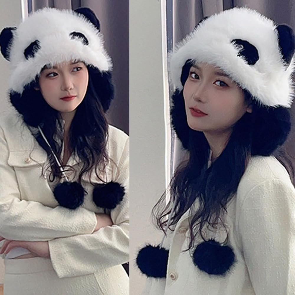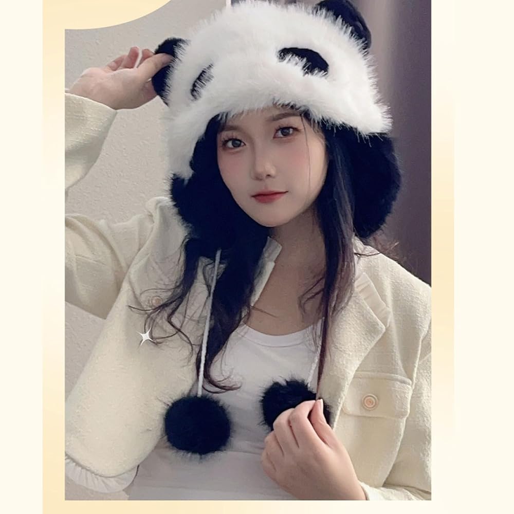 Panda fluffy hat: With a size range of 55-59cm, this hat is designed to comfortably fit most head sizes, ensuring maximum comfort for everyone. Made of high quality plush fabric with superior cozy fleece fabric as the inner lining,very fluffy and soft.
