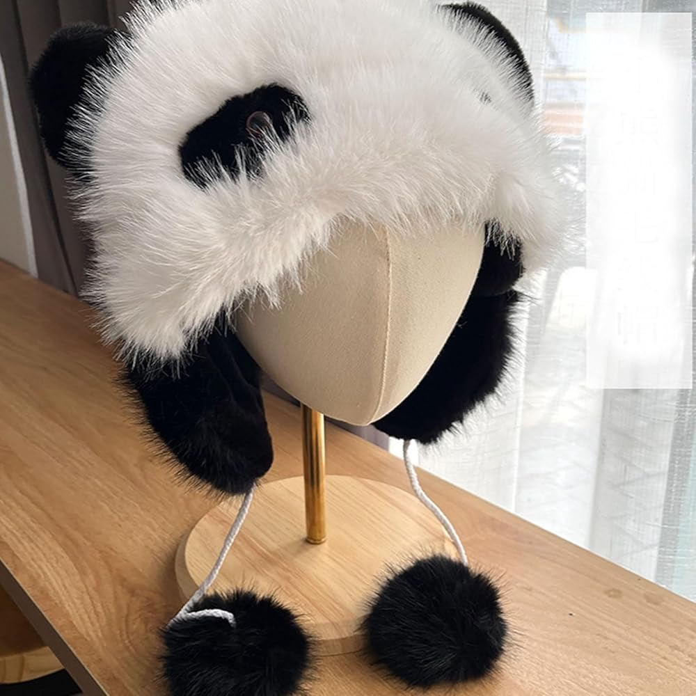 Inspired by Nature: Featuring a design inspired by the adorable panda, our hat is not just functional but also adds a touch of whimsy and cuteness to your outfit. This unique fluffy & furry hat featuring a cute plush animal with realistic sparkling black eyes,cute ears & pom pom ear flaps on both sides.
